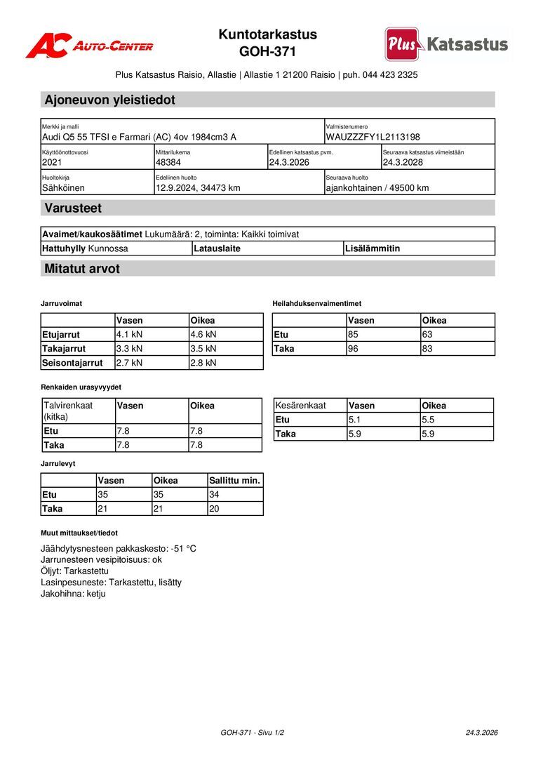 Täydellinen merkkiliikkeen huoltokirja, viimeisin huolto tehty 9/2024 34tkm