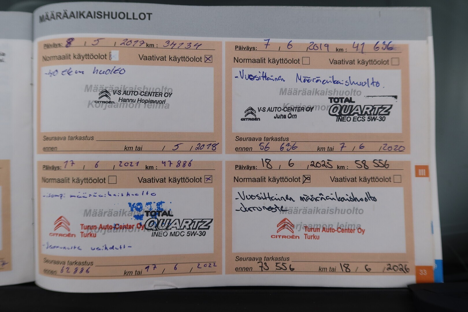 Täydellinen huoltokirja, viimeisin huolto tehty 06/2025 58 TKM kohdalla.