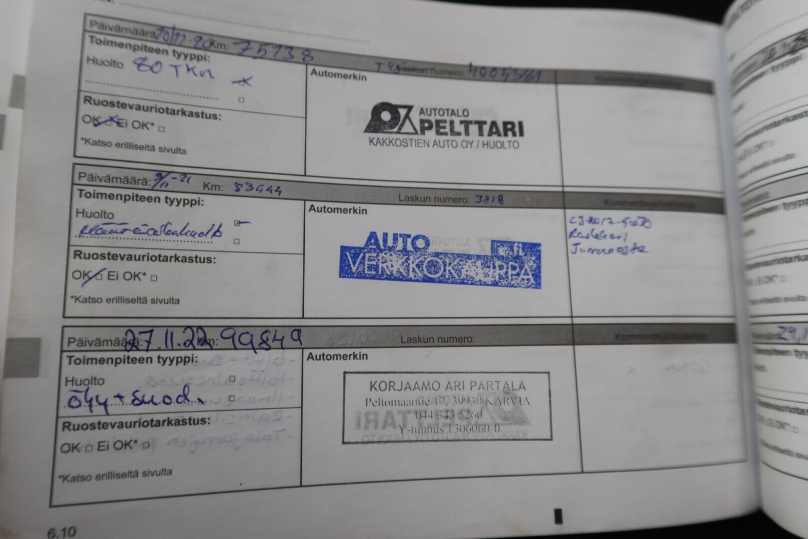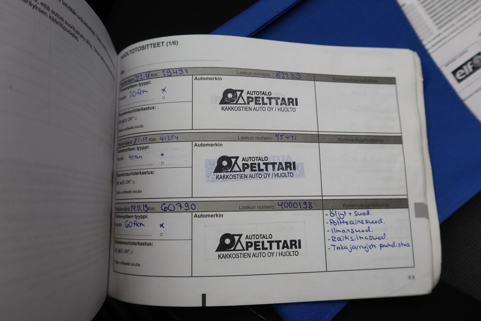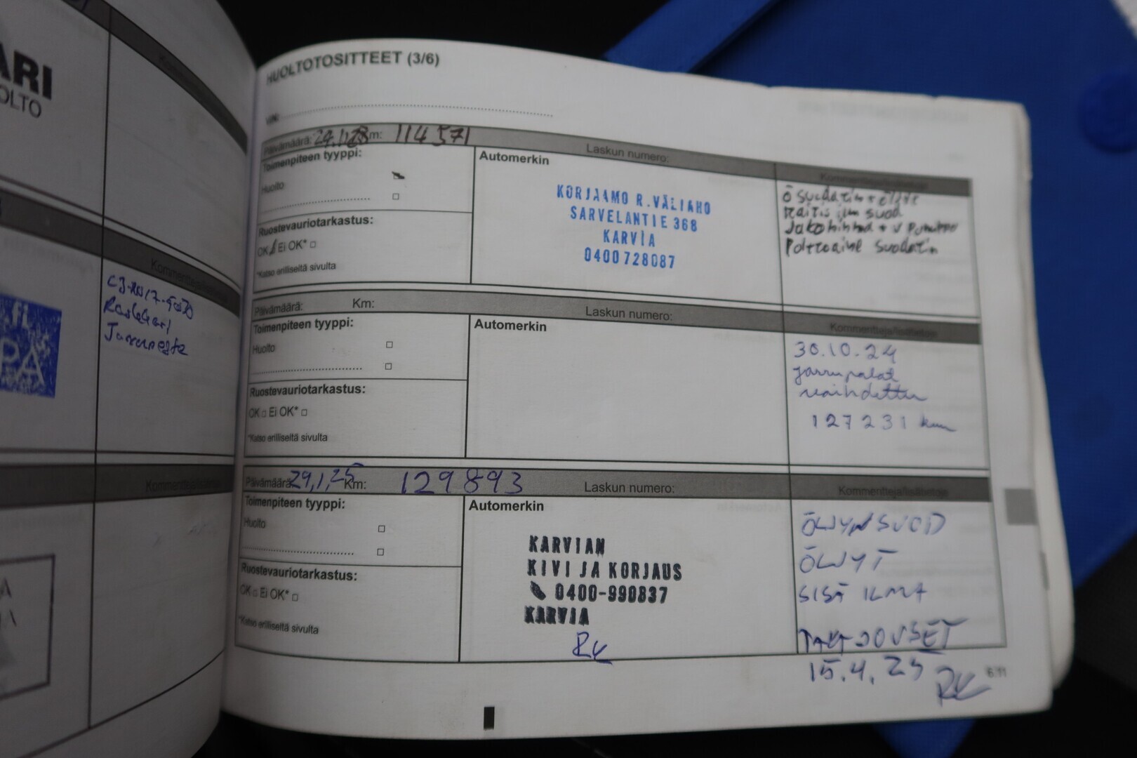 Huoltokirja, viimeisin huolto tehty 1/25