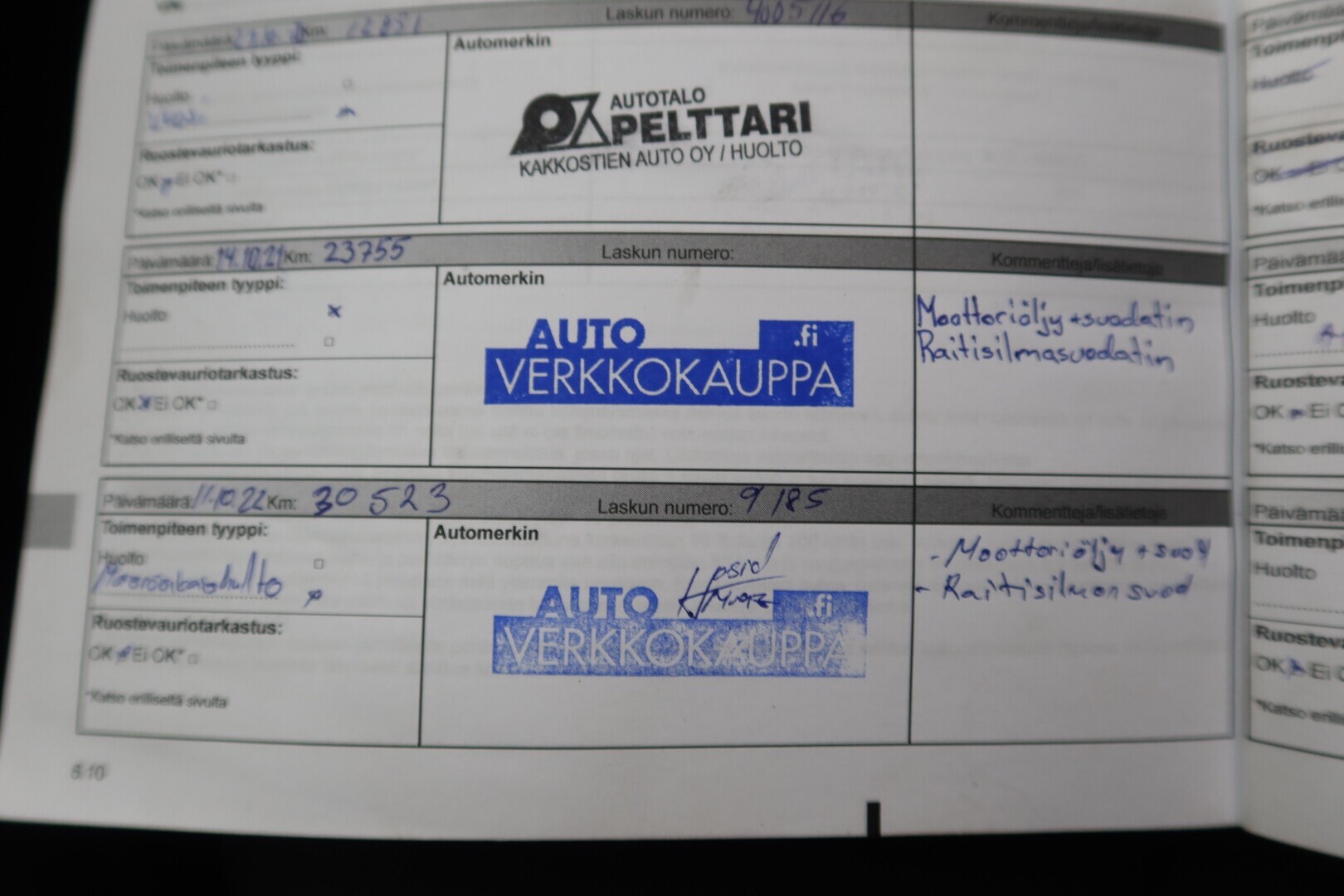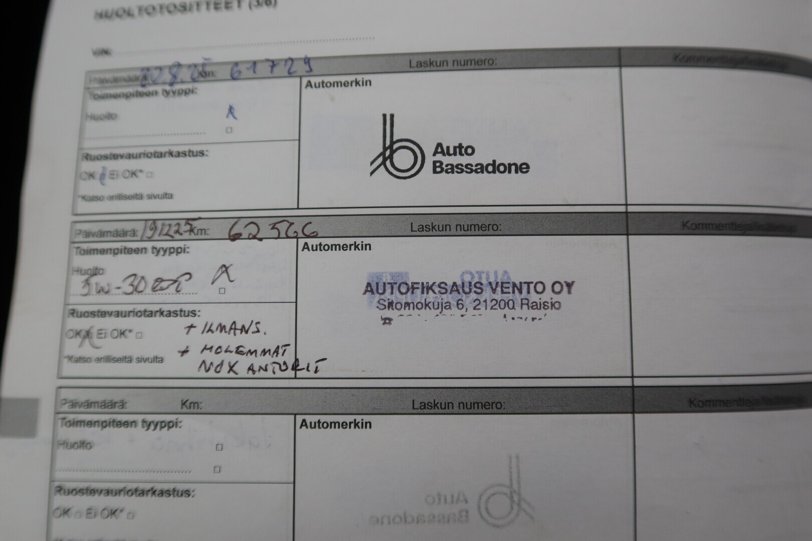 Huoltokirja, viimeisin huolto tehty