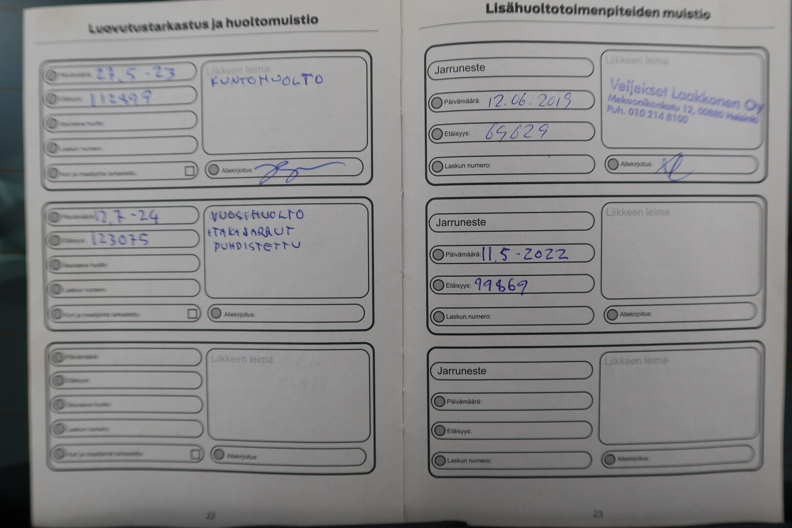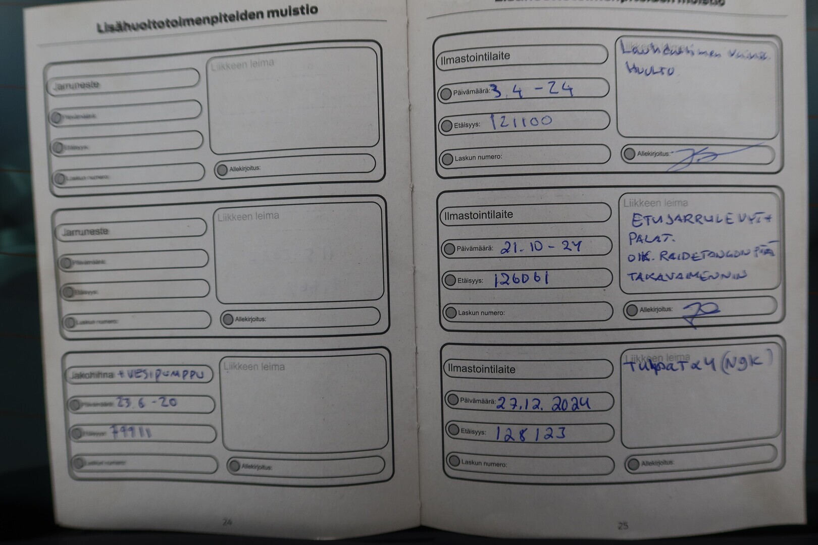 Huoltokirja, viimeisin huolto tehty 142tkm 1/26