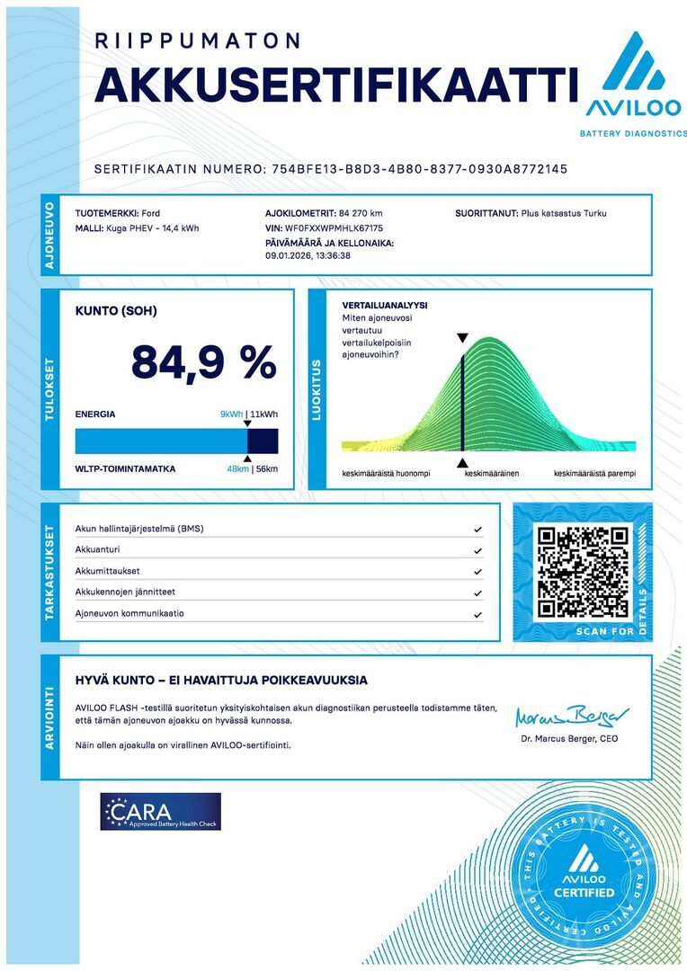 2,5 (PHEV) CVT FWD Titanium Launch Edition - SOH 84,9% / SUOMI AUTO / FORDPASS- CONNECT / NAVI / TUTKAT / VAKKARI / AUT. ILMASTOINTI