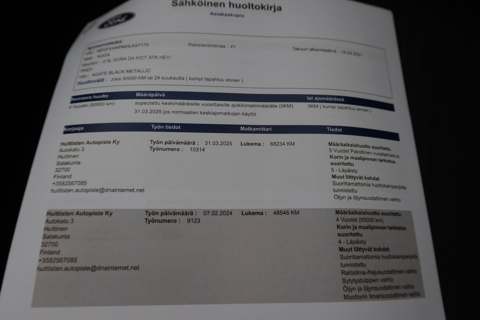 Huoltokirja, viimeisin huolto tehty 3/2025, 68tkm kohdalla