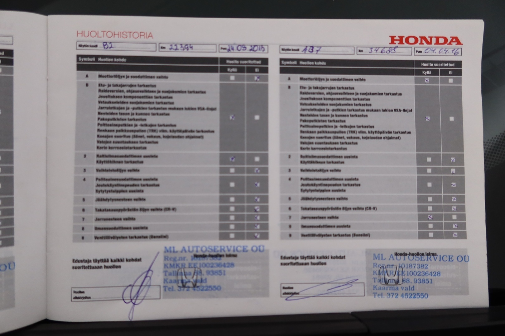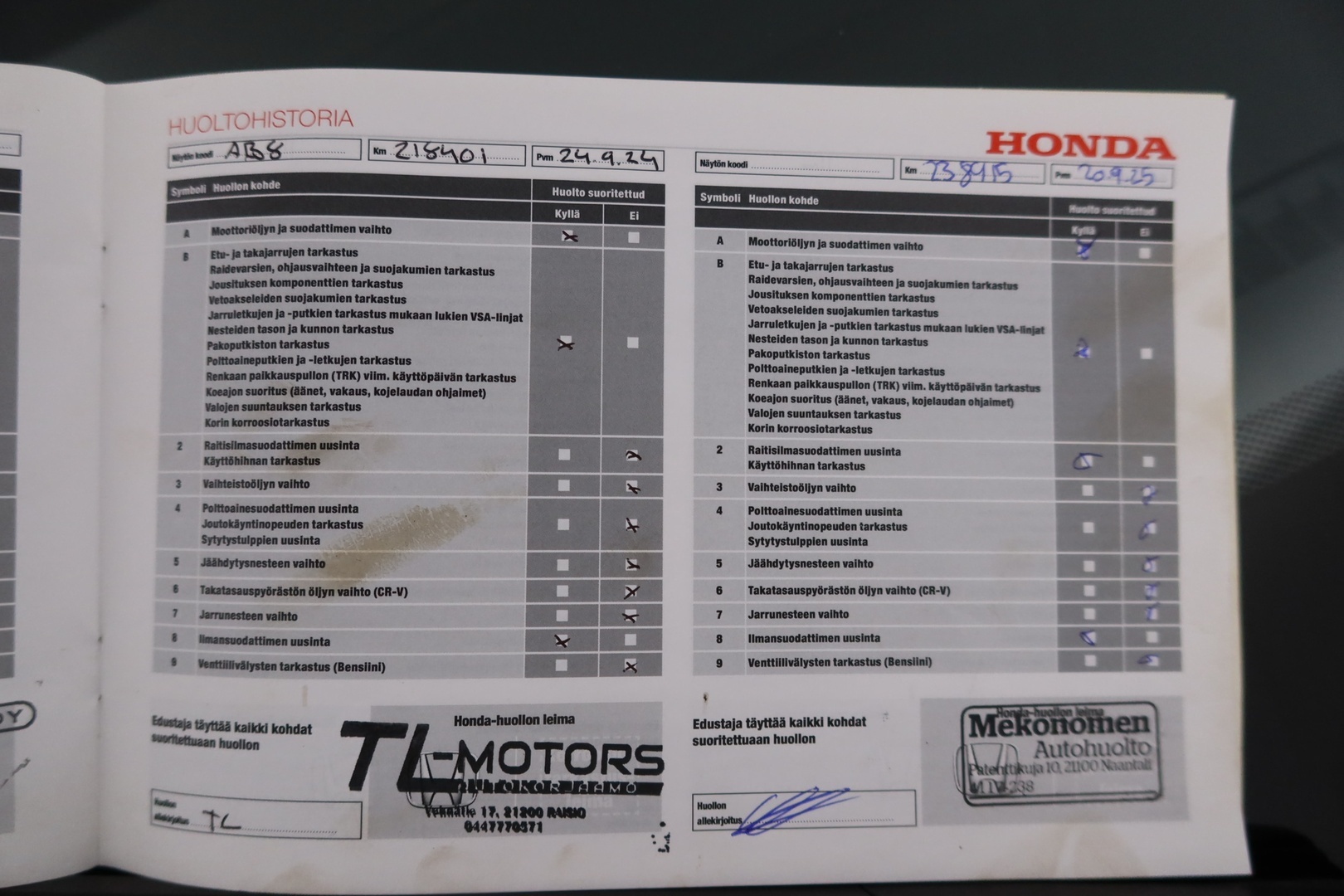 Täydellinen huoltokirja, viimeisin huolto tehty 09/2025 238 TKM kohdalla.
