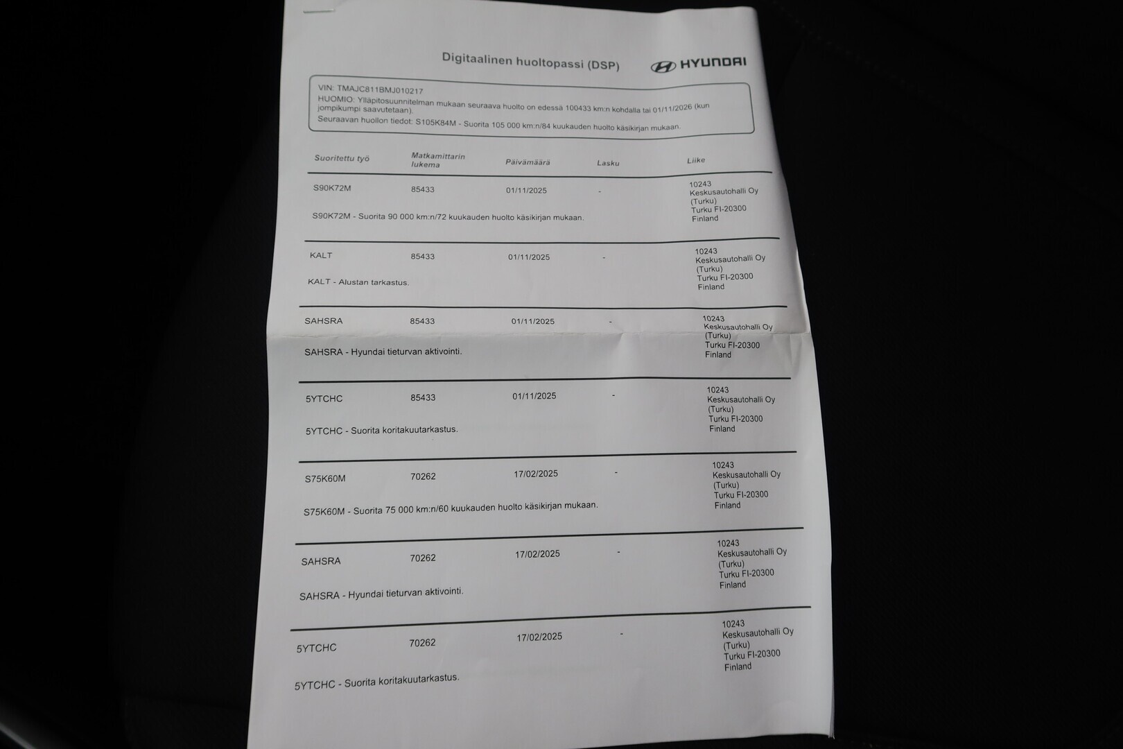 Täydellinen merkkiliikkeen huoltokirja, viimeisin huolto tehty 11/2025 84tkm.