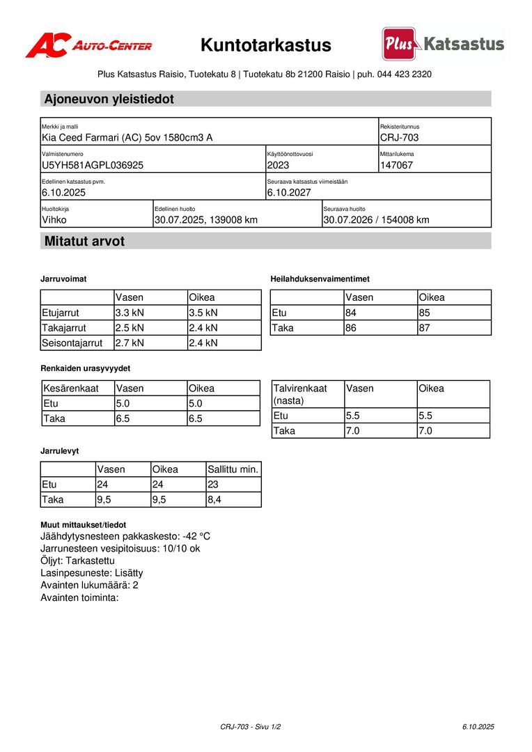 Täydellinen merkkiliikkeen huoltokirja, viimeisin huolto tehty 07/2025 139tkm.