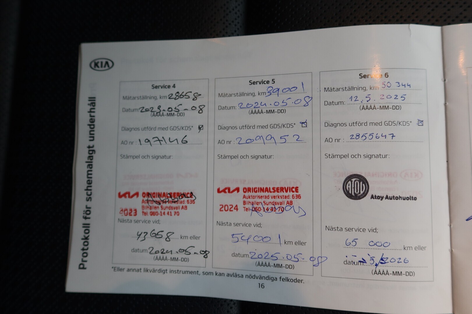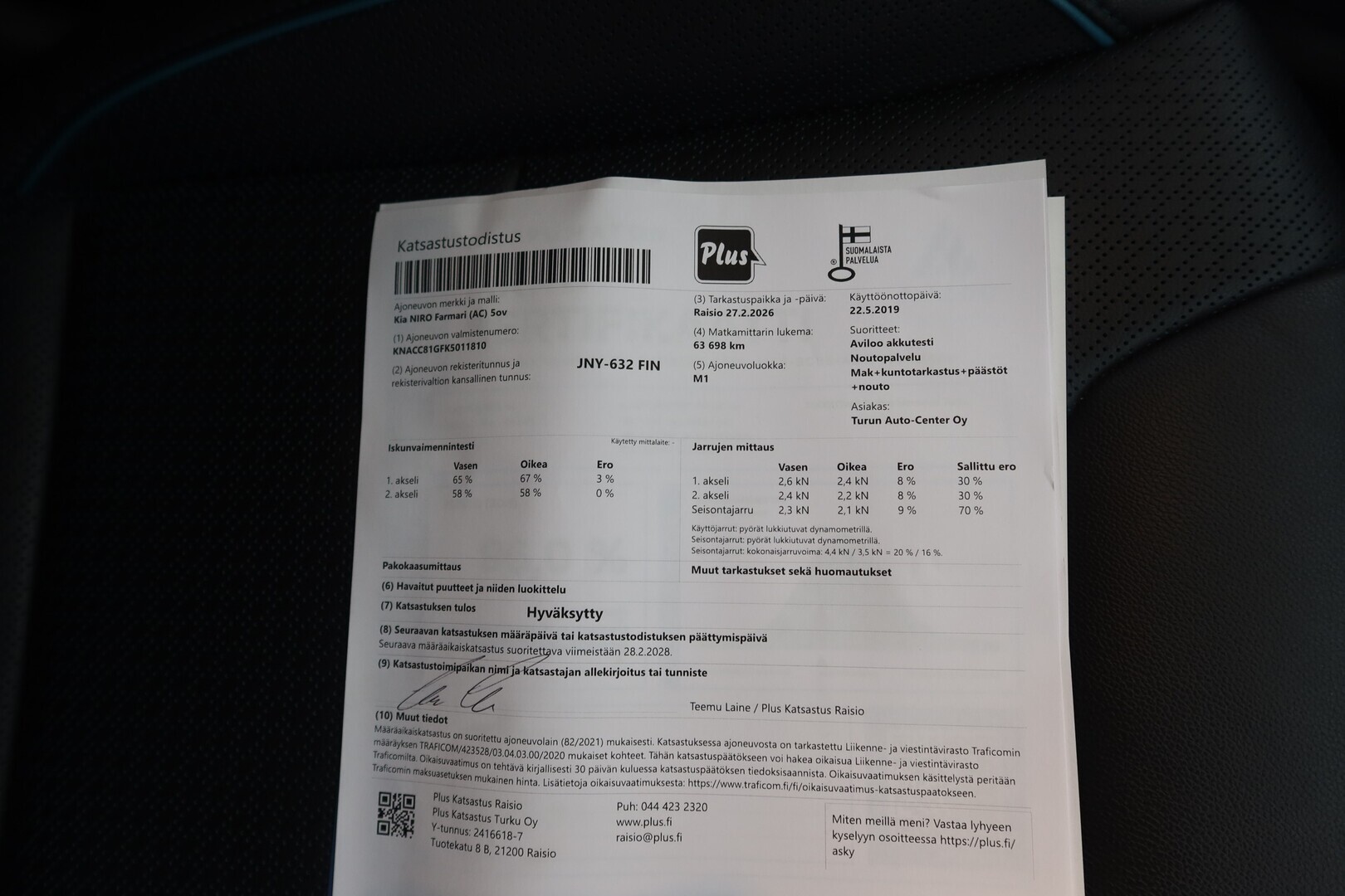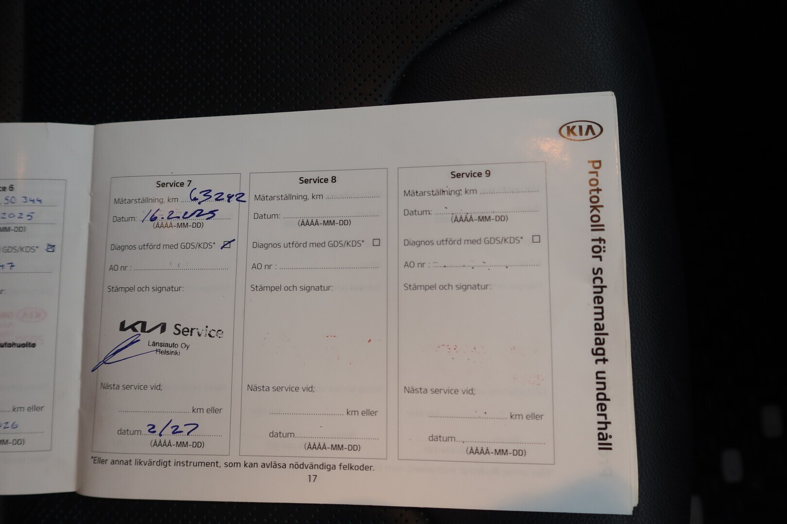 Huoltokirja, viimeisin huolto tehty 02/2026 62tkm.