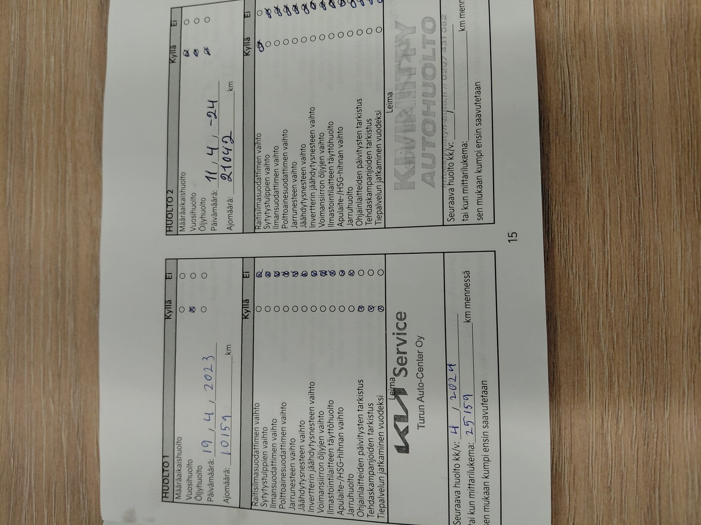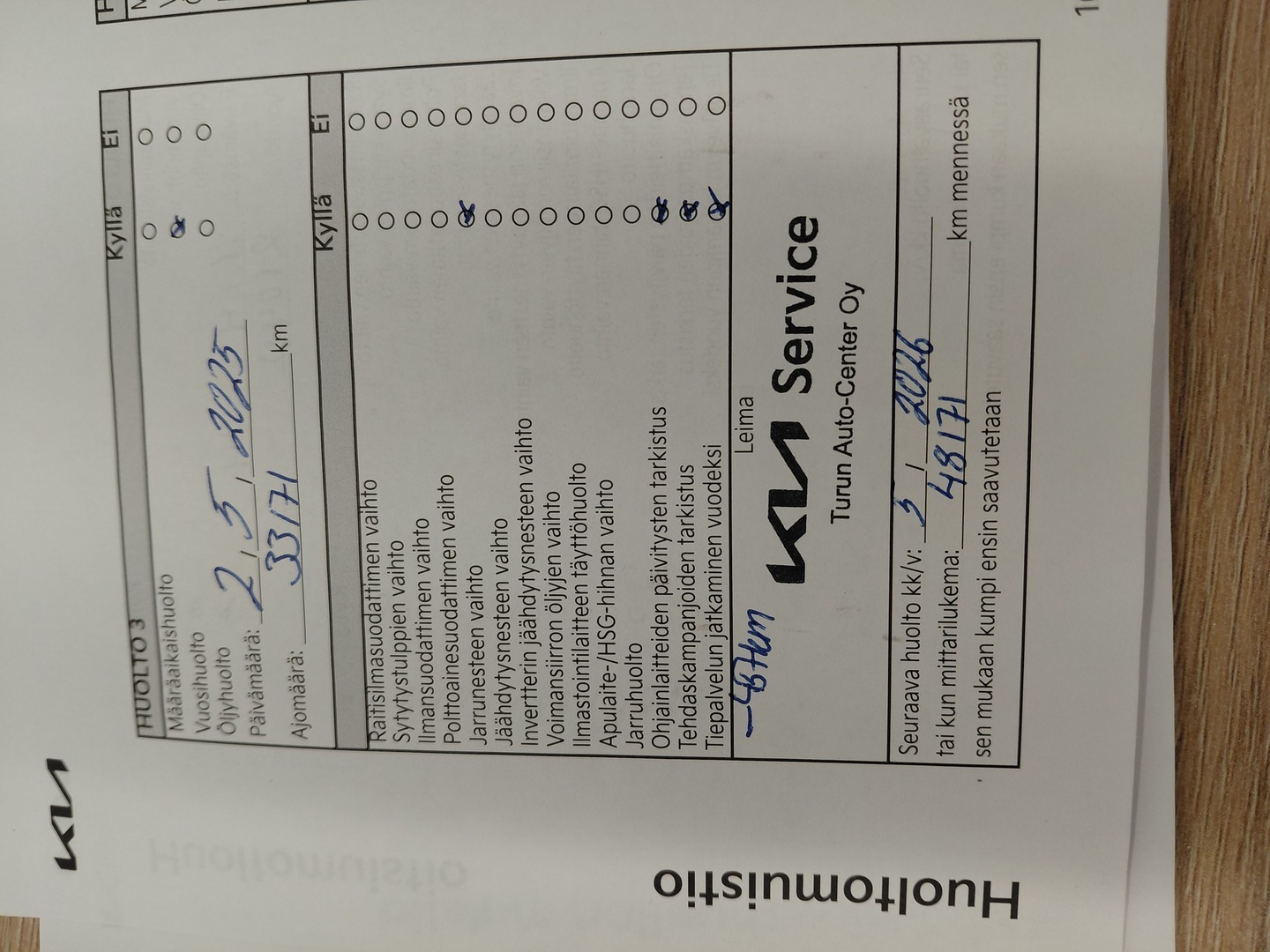 Huoltokirja, viimeisin huolto tehty 05/2025 33tkm.
