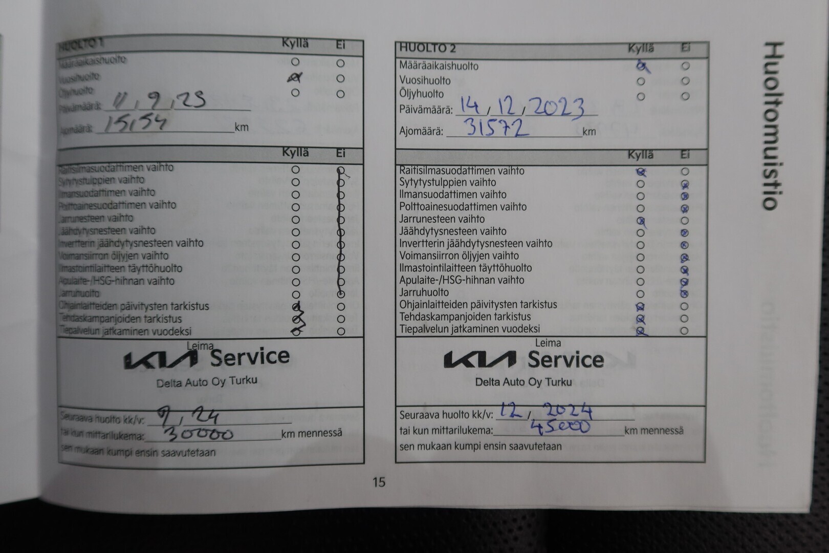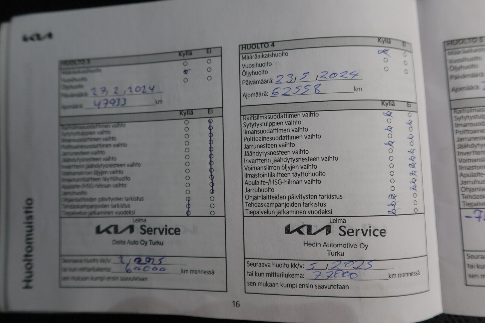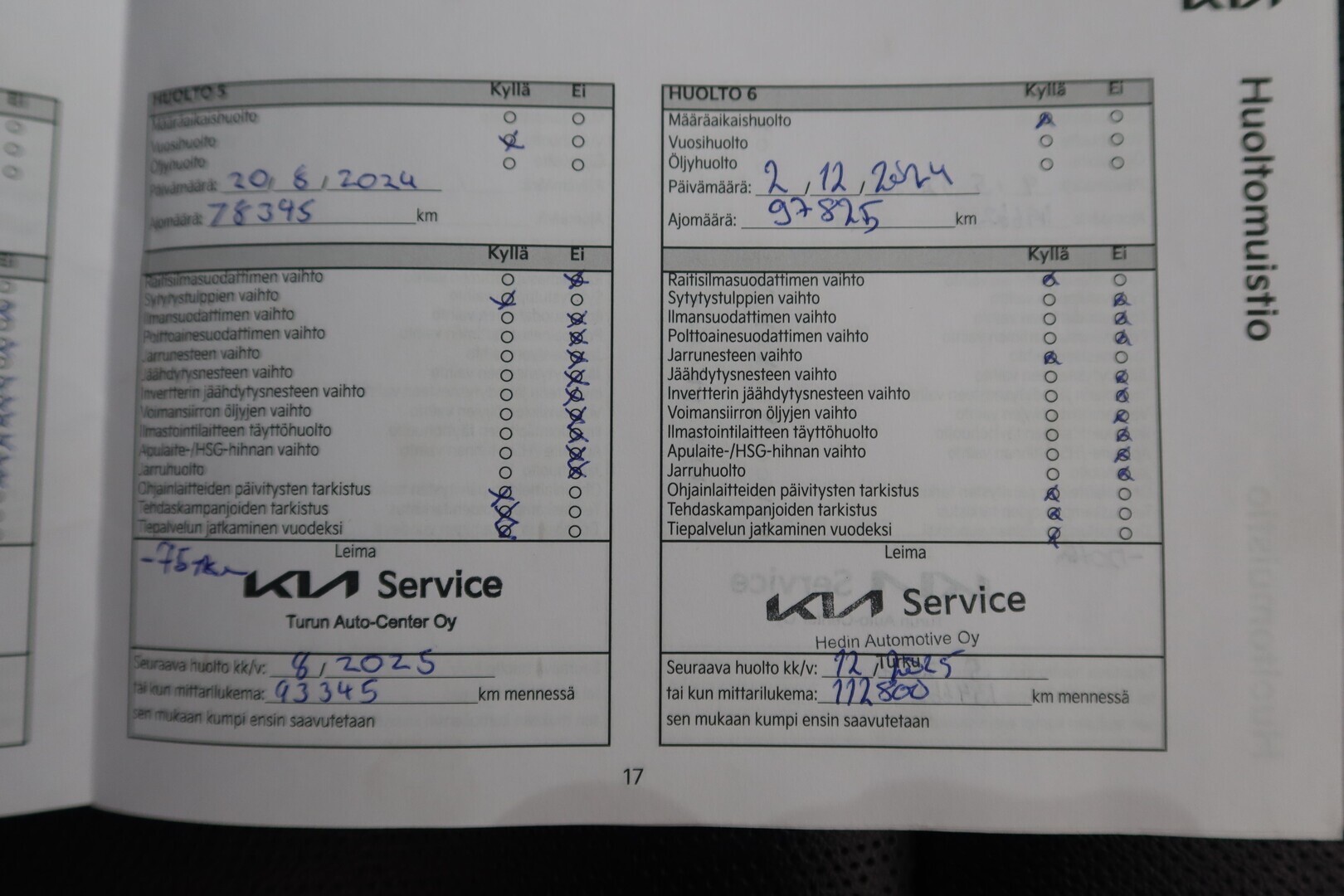 Huoltokirja, viimeisin huolto tehty 05/2025 119tkm.