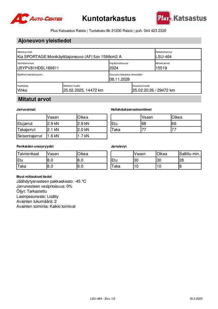 Täydellinen merkkiliikkeen huoltokirja, viimeisin huolto tehty 02/2025 / 14472 km