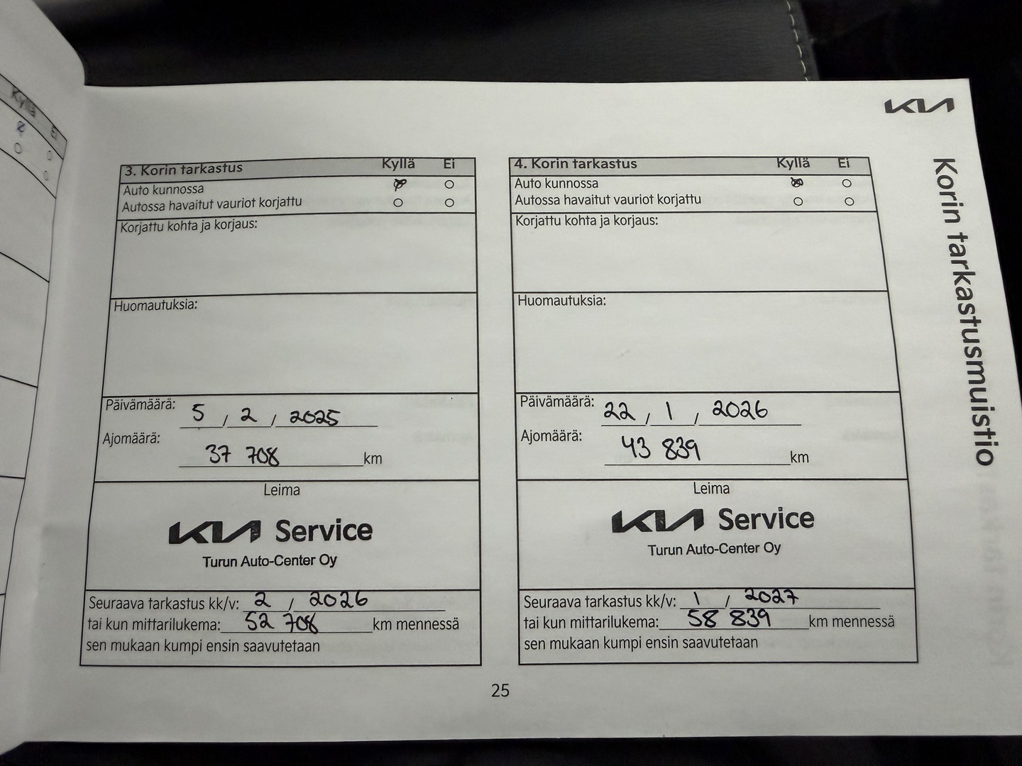 Täydellinen merkkiliikkeen huoltokirja, viimeisin huolto tehty 01/2026 43 TKM kohdalla