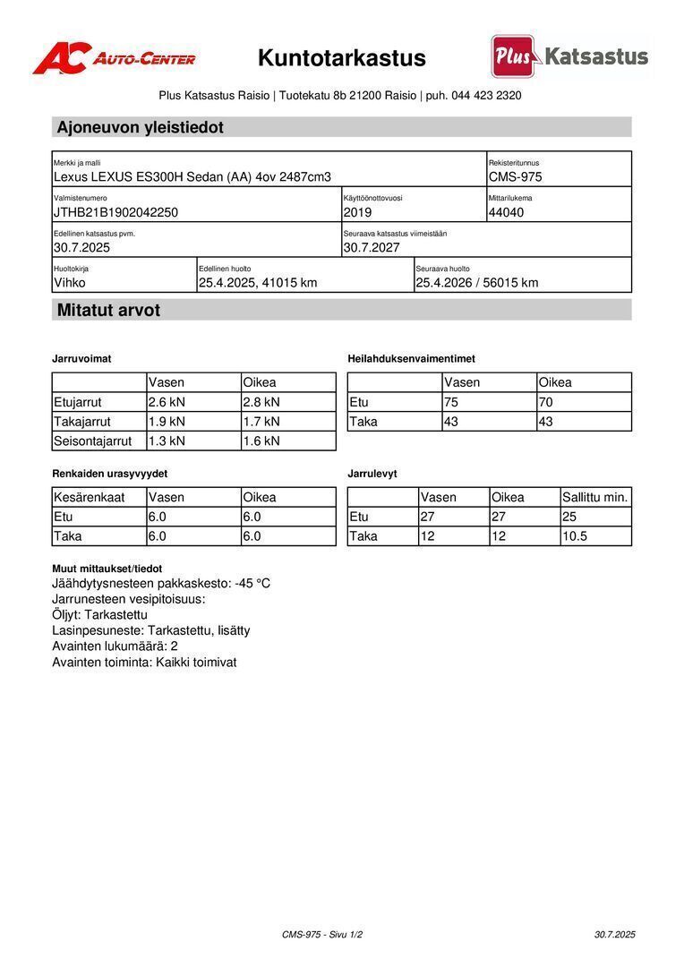 Täydellinen merkkiliikkeen huoltokirja, viimeisin huolto tehty 04/2025, 41015km kohdalla.