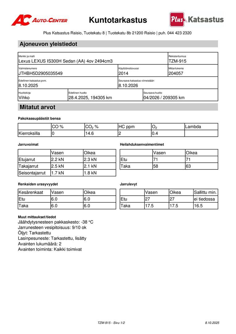 Täydellinen huoltokirja, viimeisin huolto tehty 4/25, 194tkm
