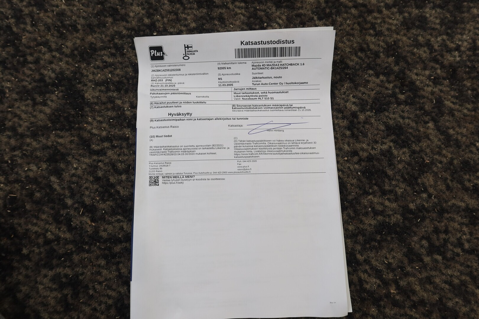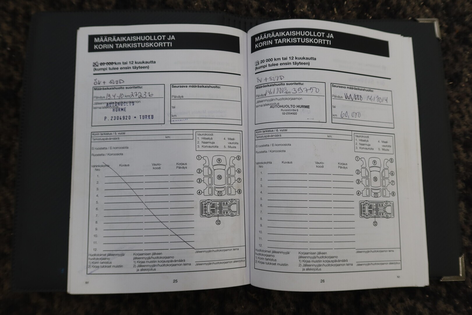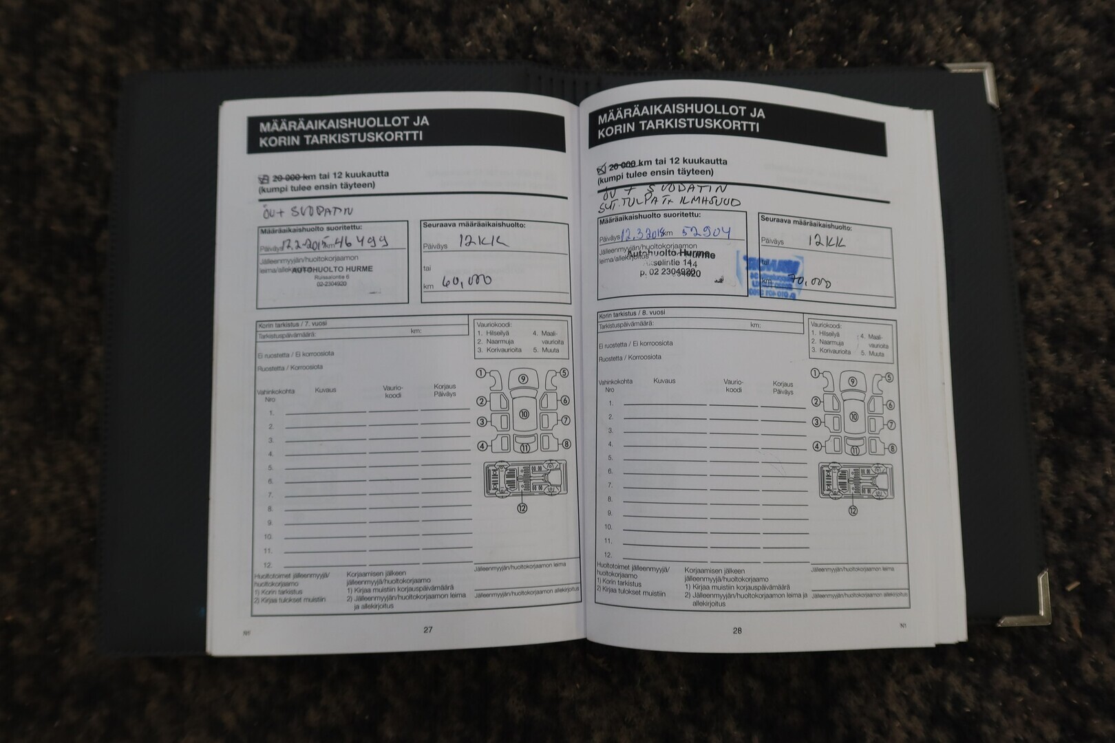 Huoltokirja, viimeisin huolto tehty 87tkm 07/2025