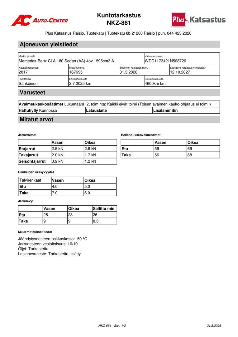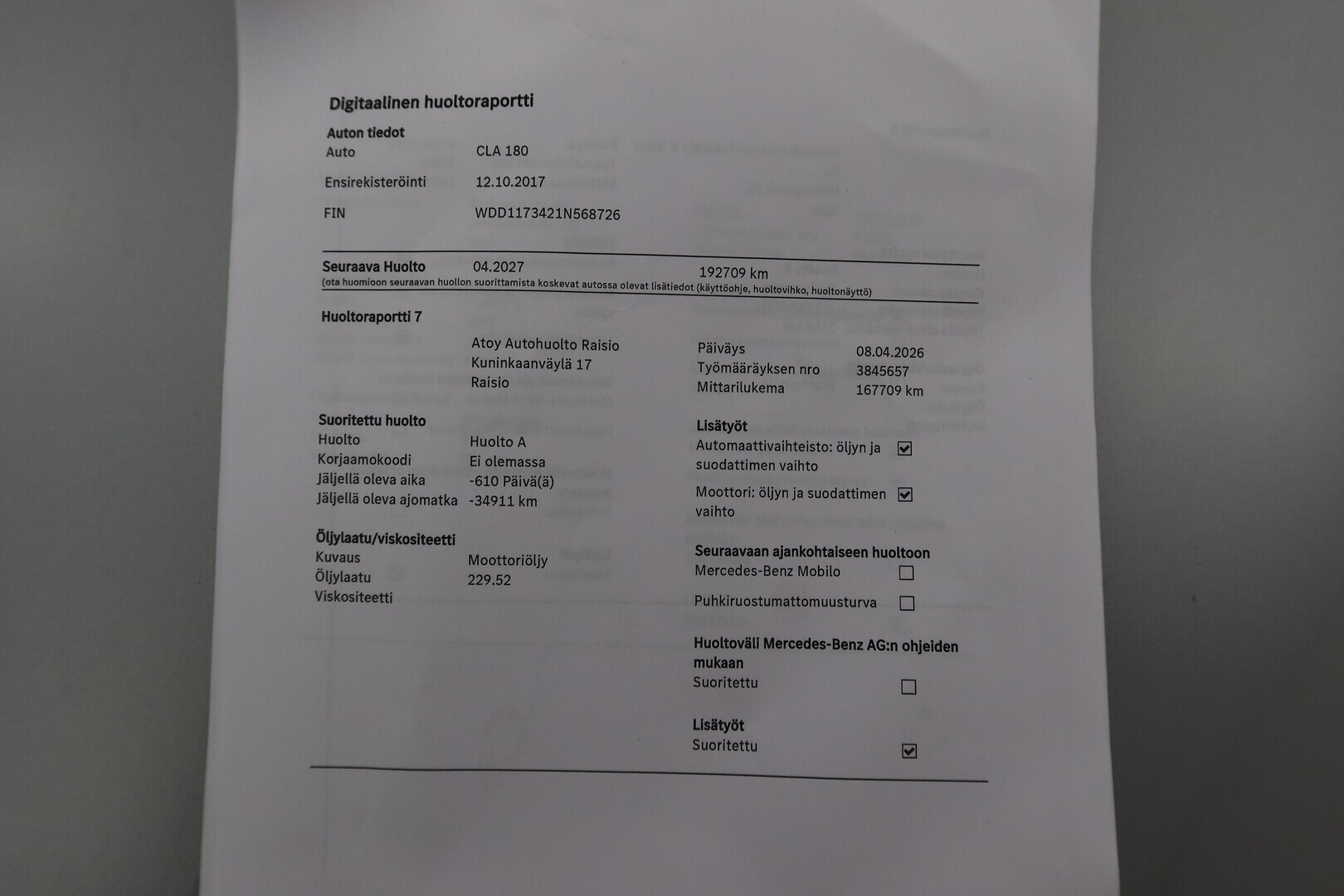 Huoltokirja, viimeisin huolto tehty 08.04.2026 167tkm kohdalla