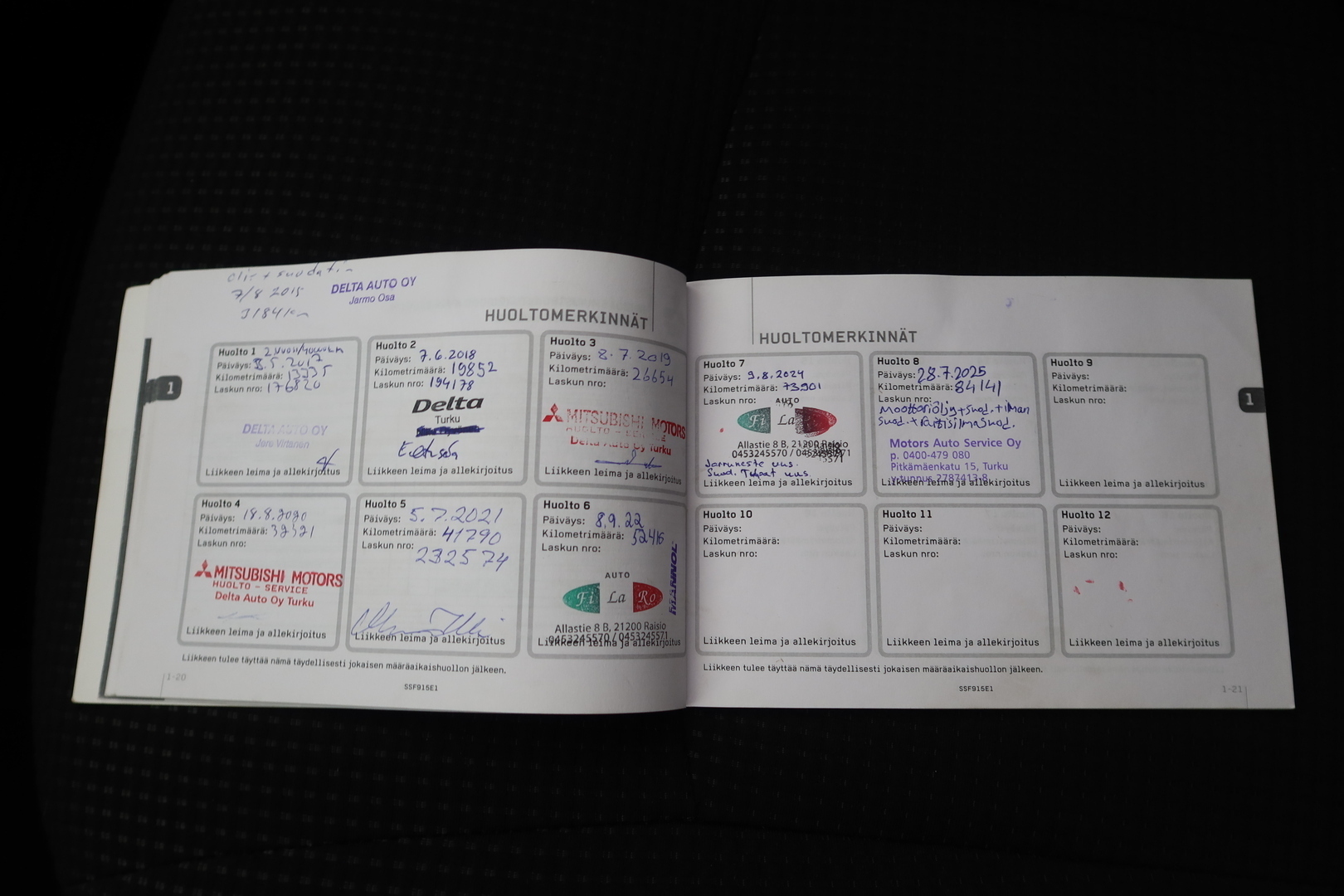 Huoltokirja, viimeisin huolto tehty 07/2025 84tkm