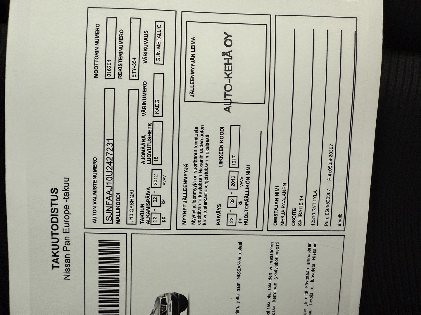 1,6L Stop / Start System Acenta 2WD 5M/T MY11 - Kestosuosikki Qashqai hyvällä huoltohistorialla ja uusilla jarruilla* Vain 2-omistajaa* Autom-ilmastointi' Lohko+sisätilanlämmitin* Vetokoukku.