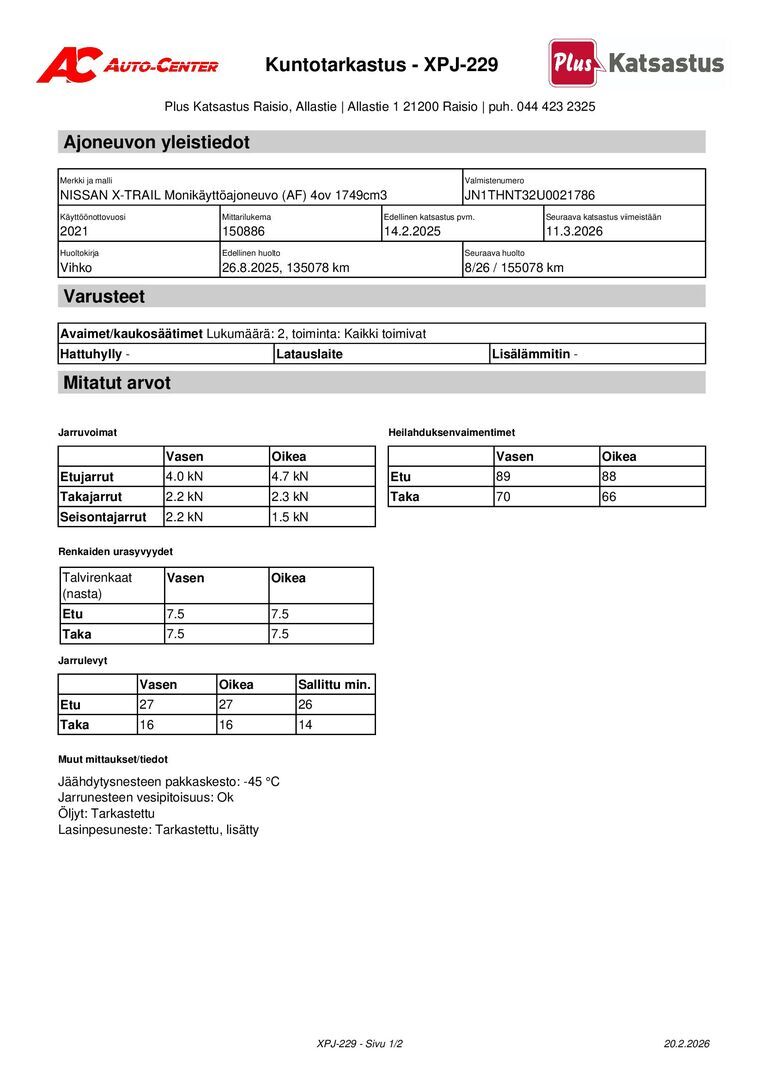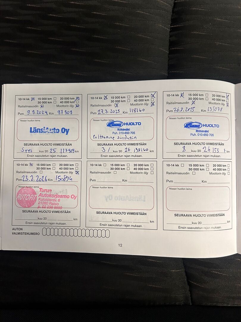 Huoltokirja, viimeisin huolto tehty 2/2026, 150tkm kohdalla! Moottoriöljyt + öljynsuodatin