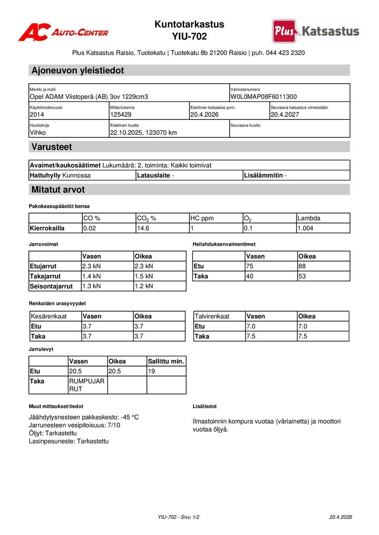Täydellinen merkkiliikkeen huoltokirja, viimeisin huolto tehty 10/25 123tkm