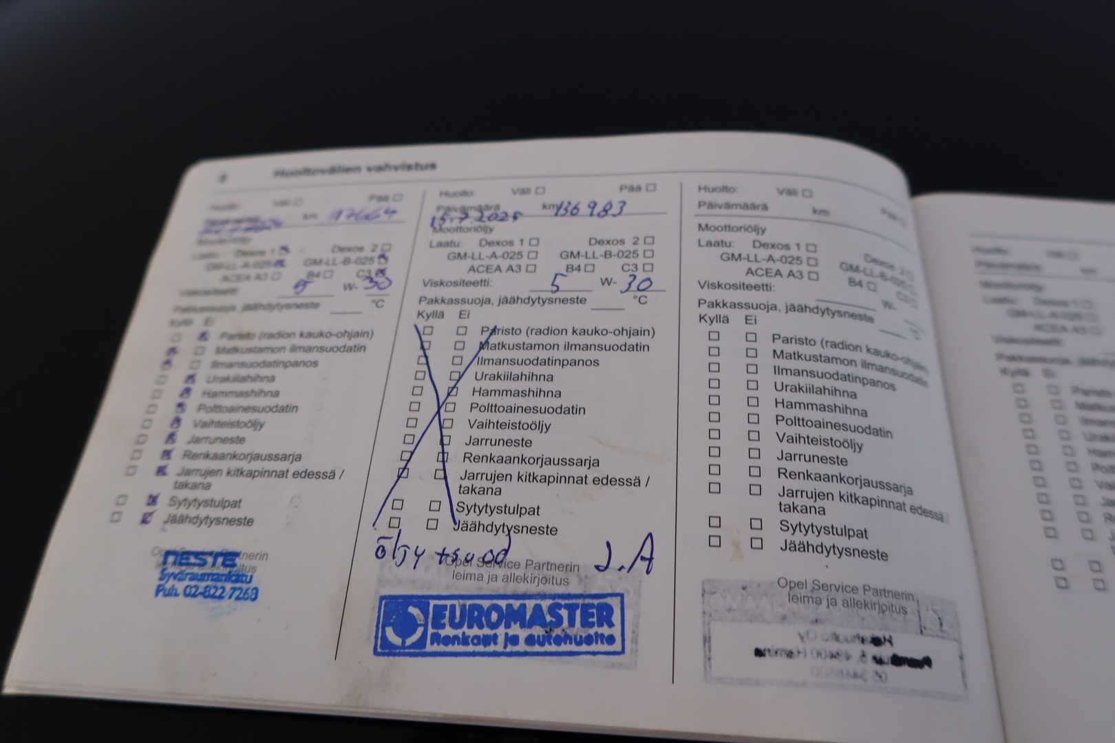 Huoltokirja, viimeisin huolto tehty 137tkm/ 7.2025