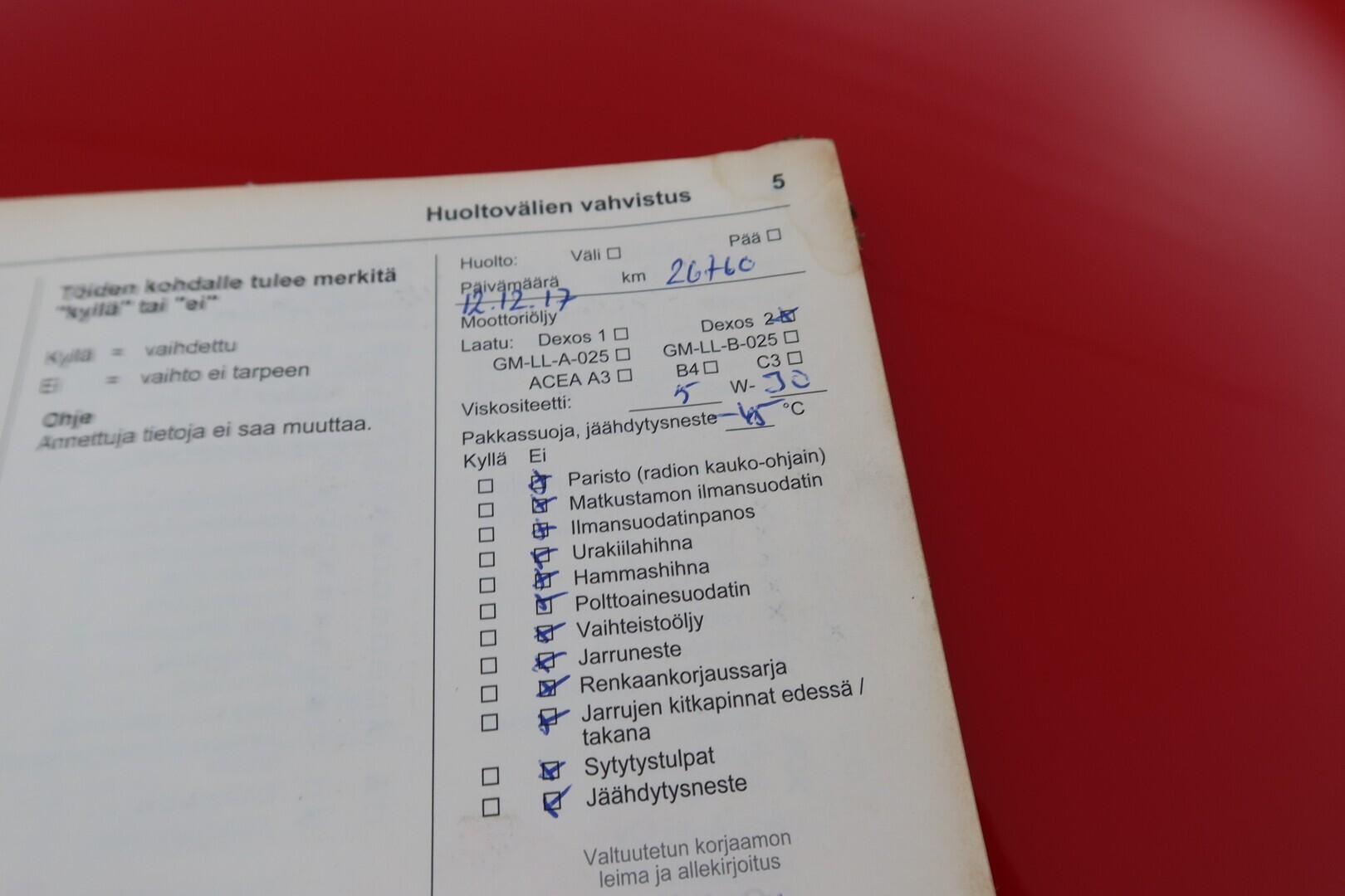 Huoltokirja, viimeisin huolto tehty n. 109tkm. ajettuna!