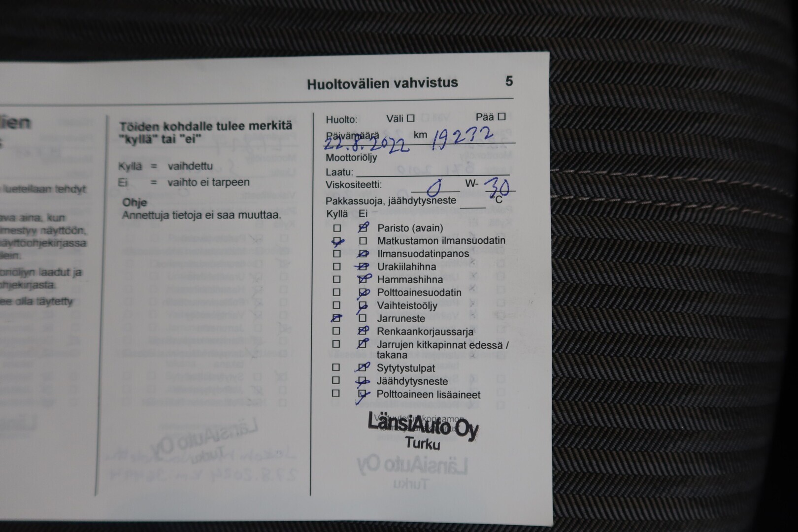 Täydellinen merkkiliikkeen huoltokirja, viimeisin huolto tehty 08/2025 44tkm.