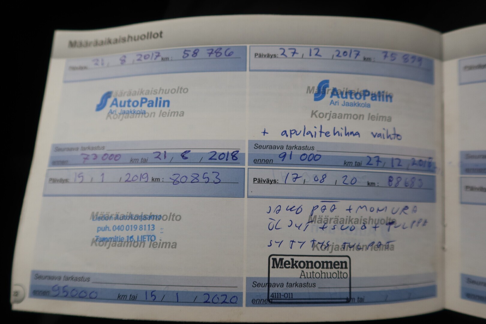 Huoltokirja, viimeisin huolto tehty 02/2026 117tkm.