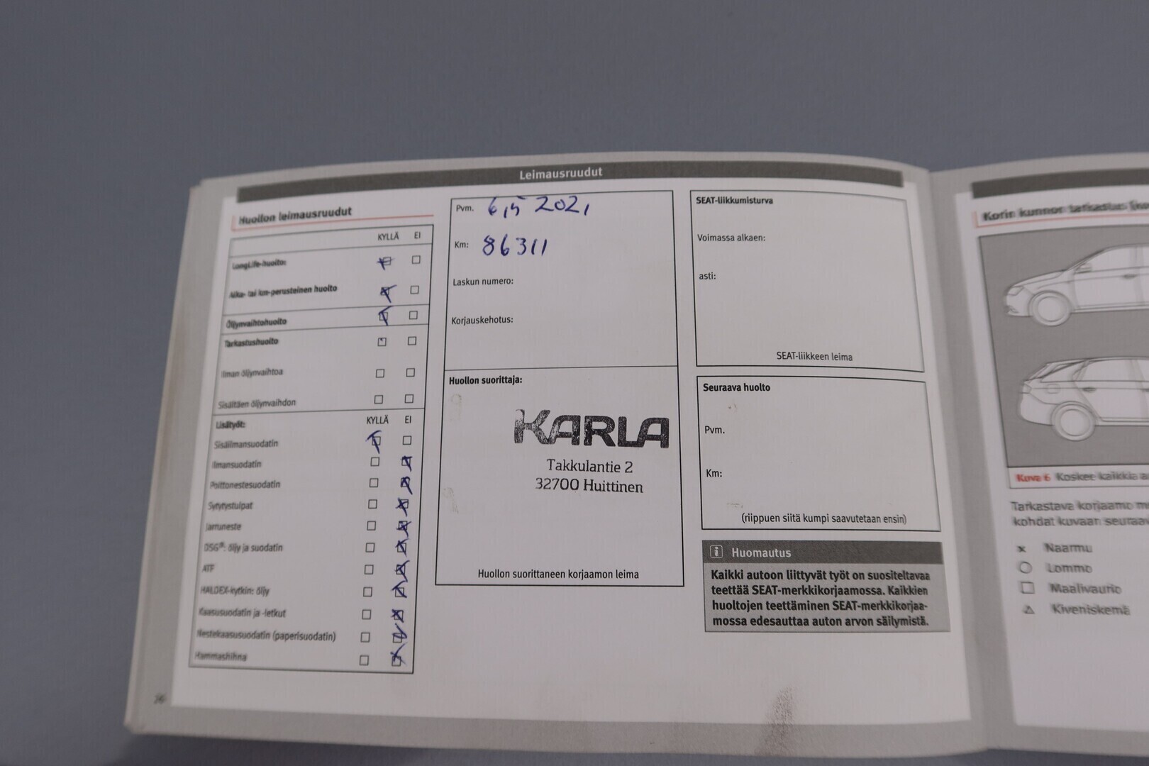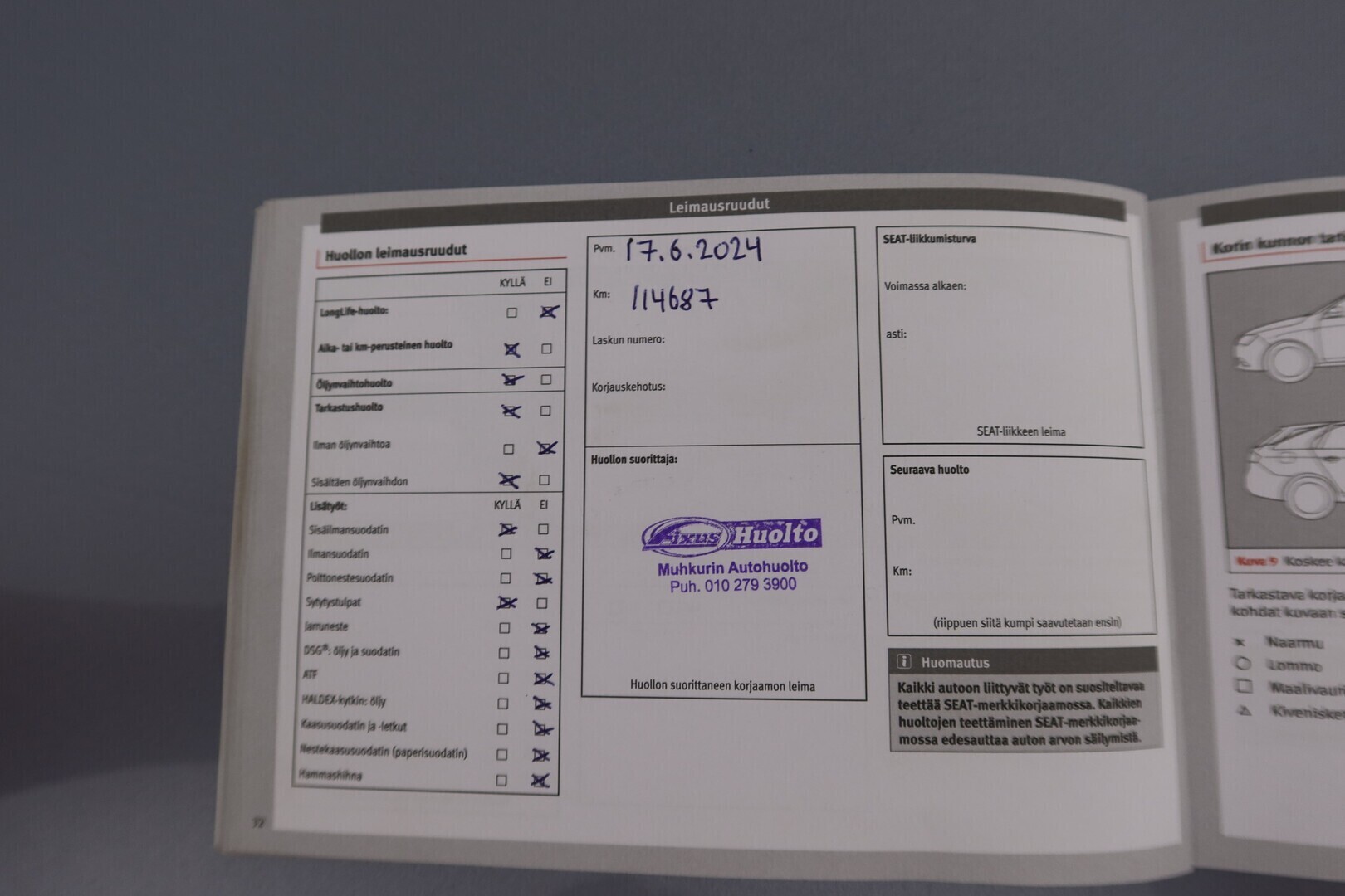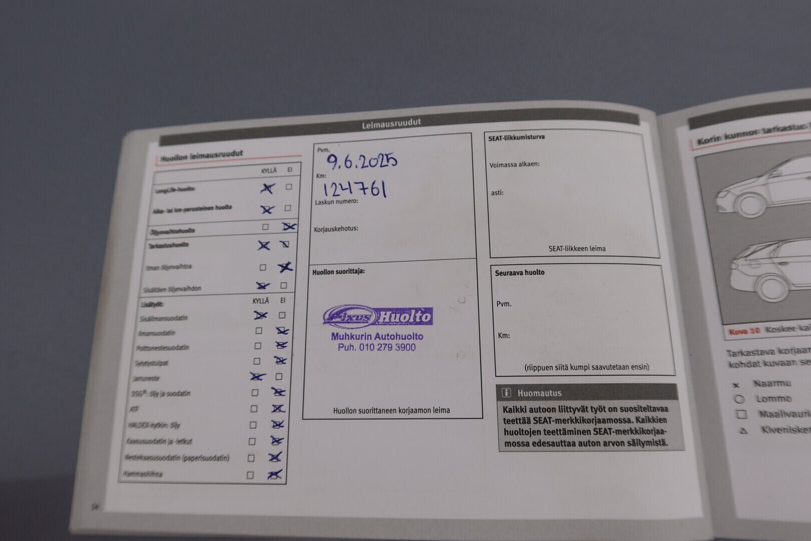 Huoltokirja, viimeisin huolto tehty 06/2025 124tkm.