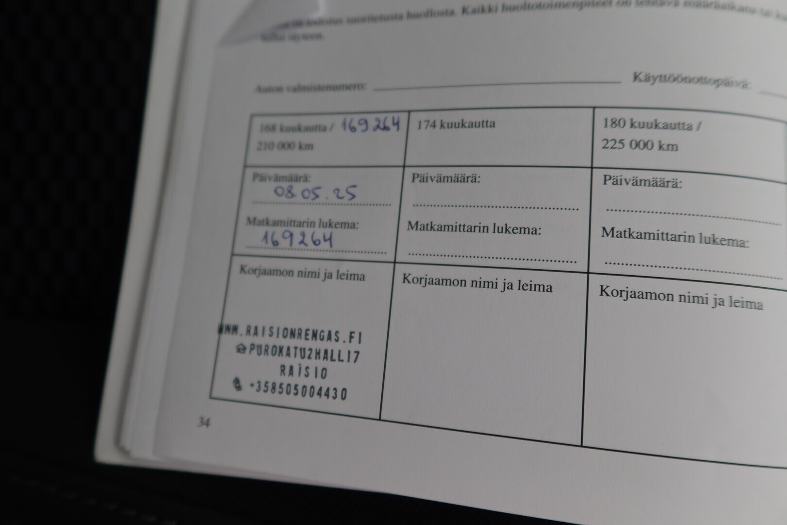 Huoltokirja, viimeisin huolto tehty n. 169tkm. ajettuna!