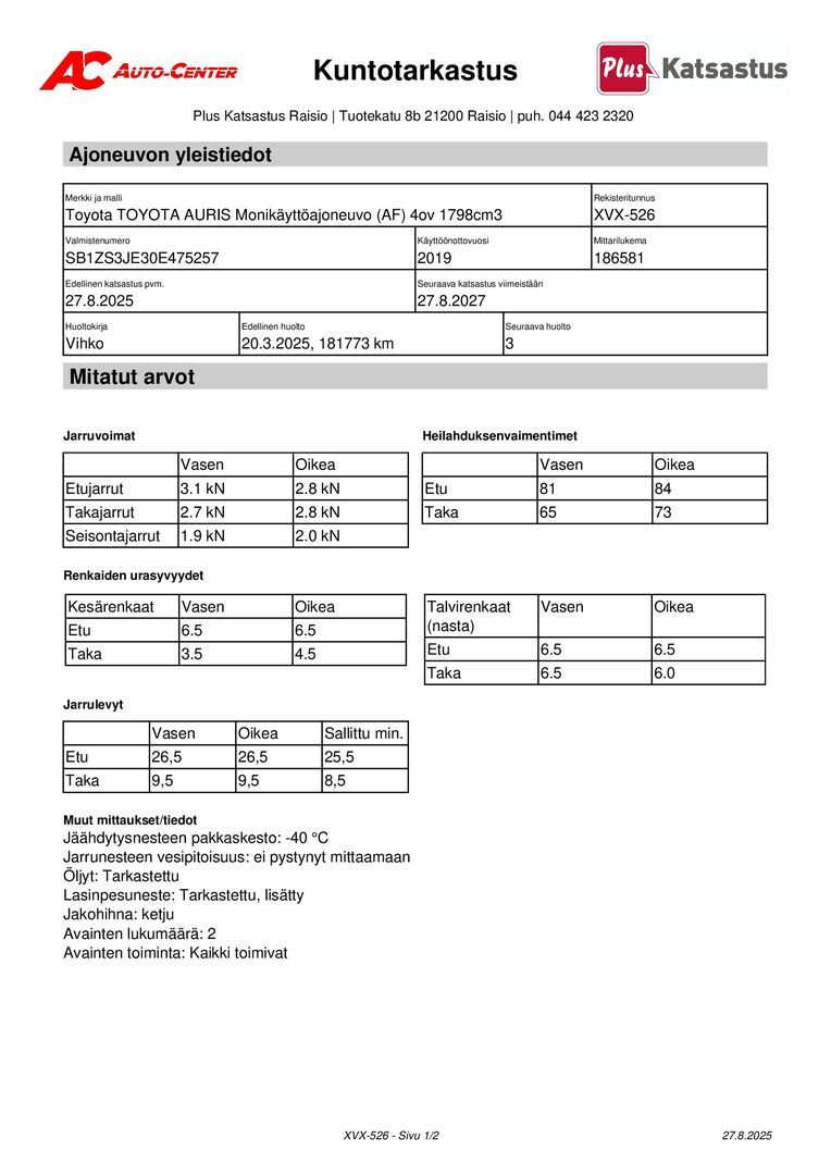 Täydellinen huoltokirja, viimeisin huolto tehty 181tkm 3/2025