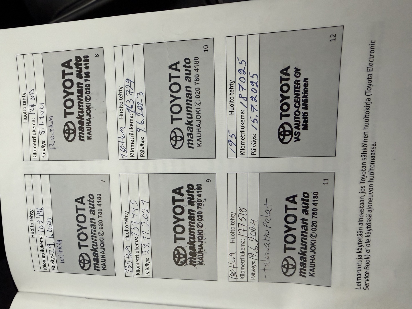 Täydellinen huoltokirja, Viimeisin 7/2025, 187tkm