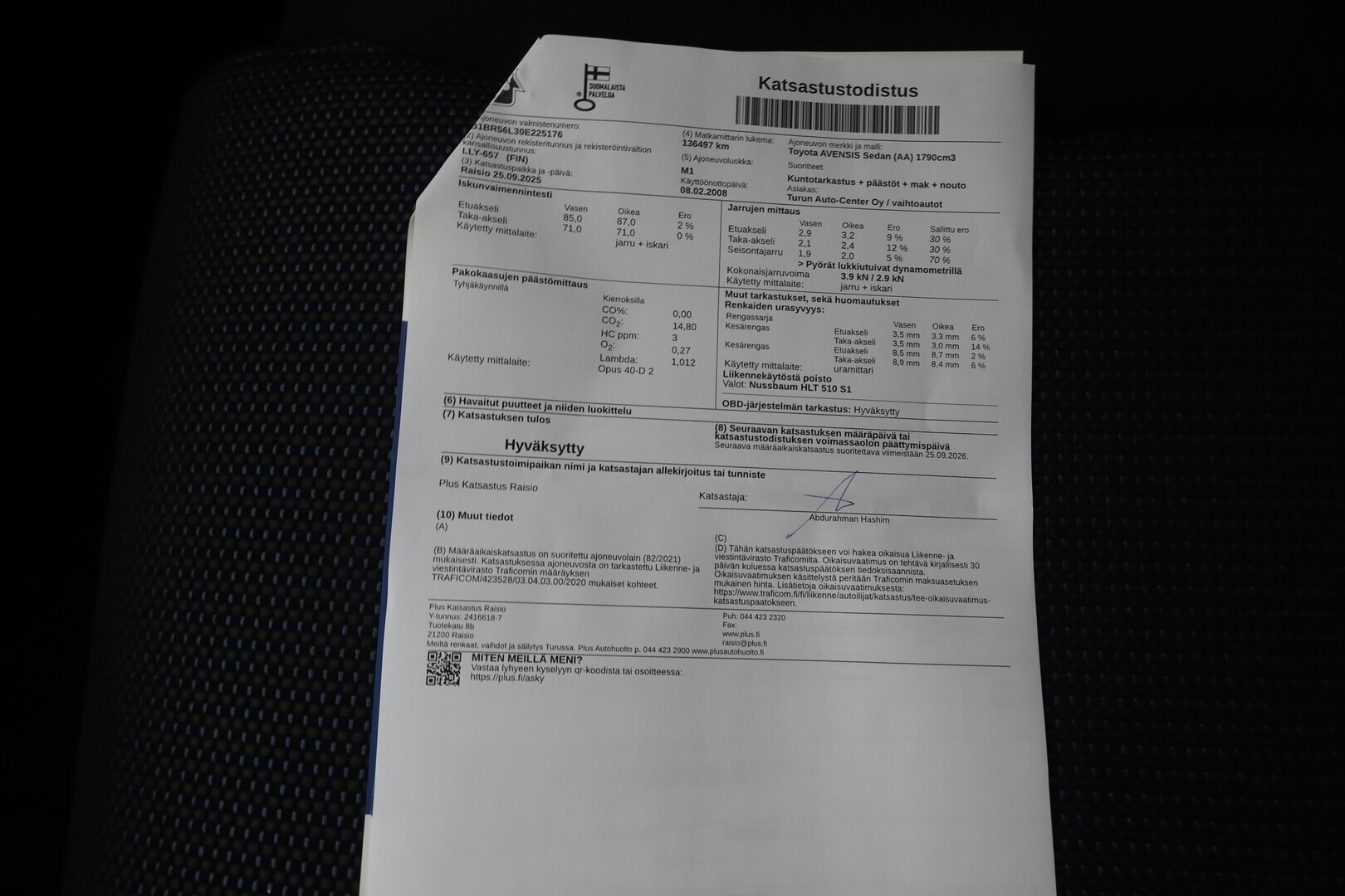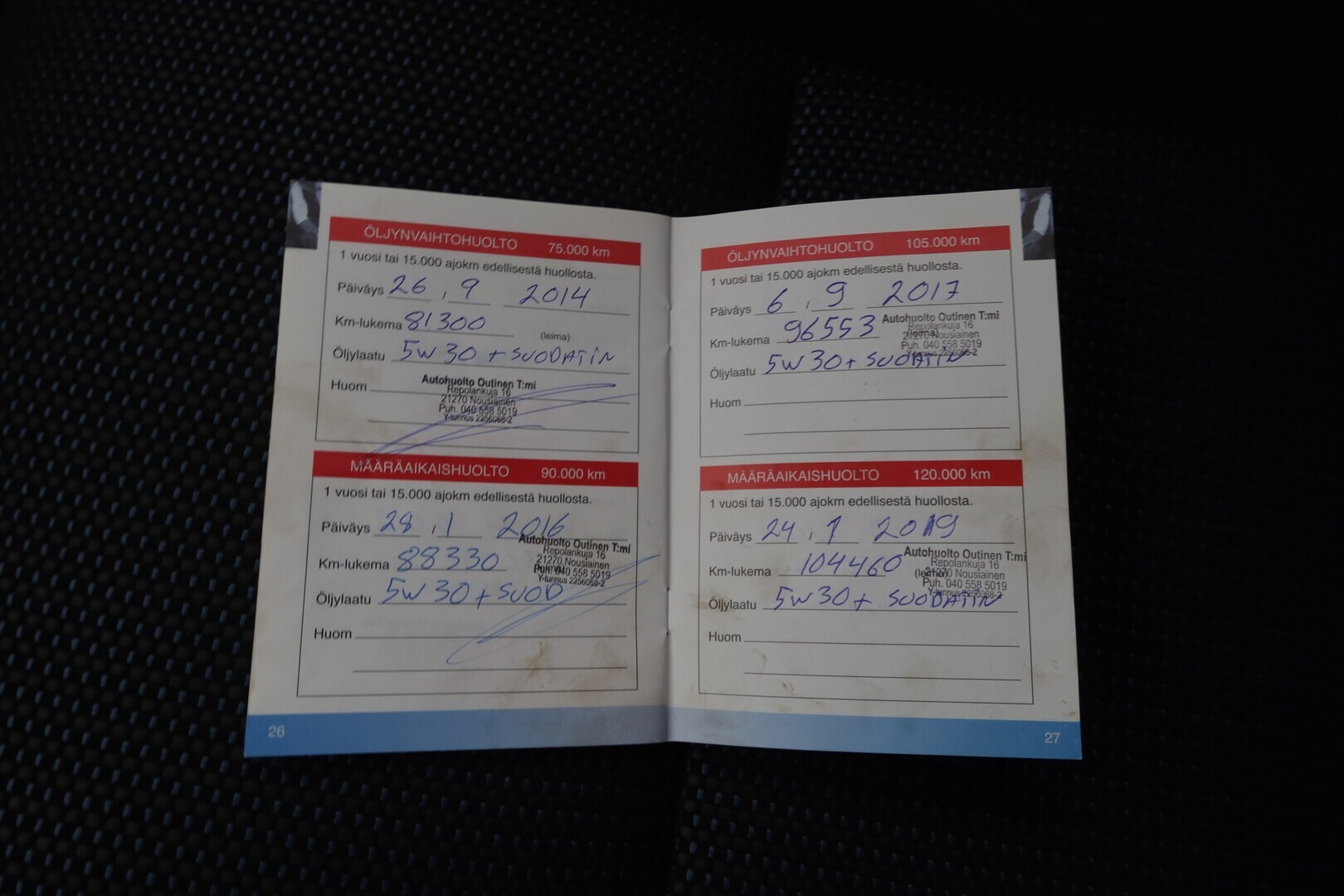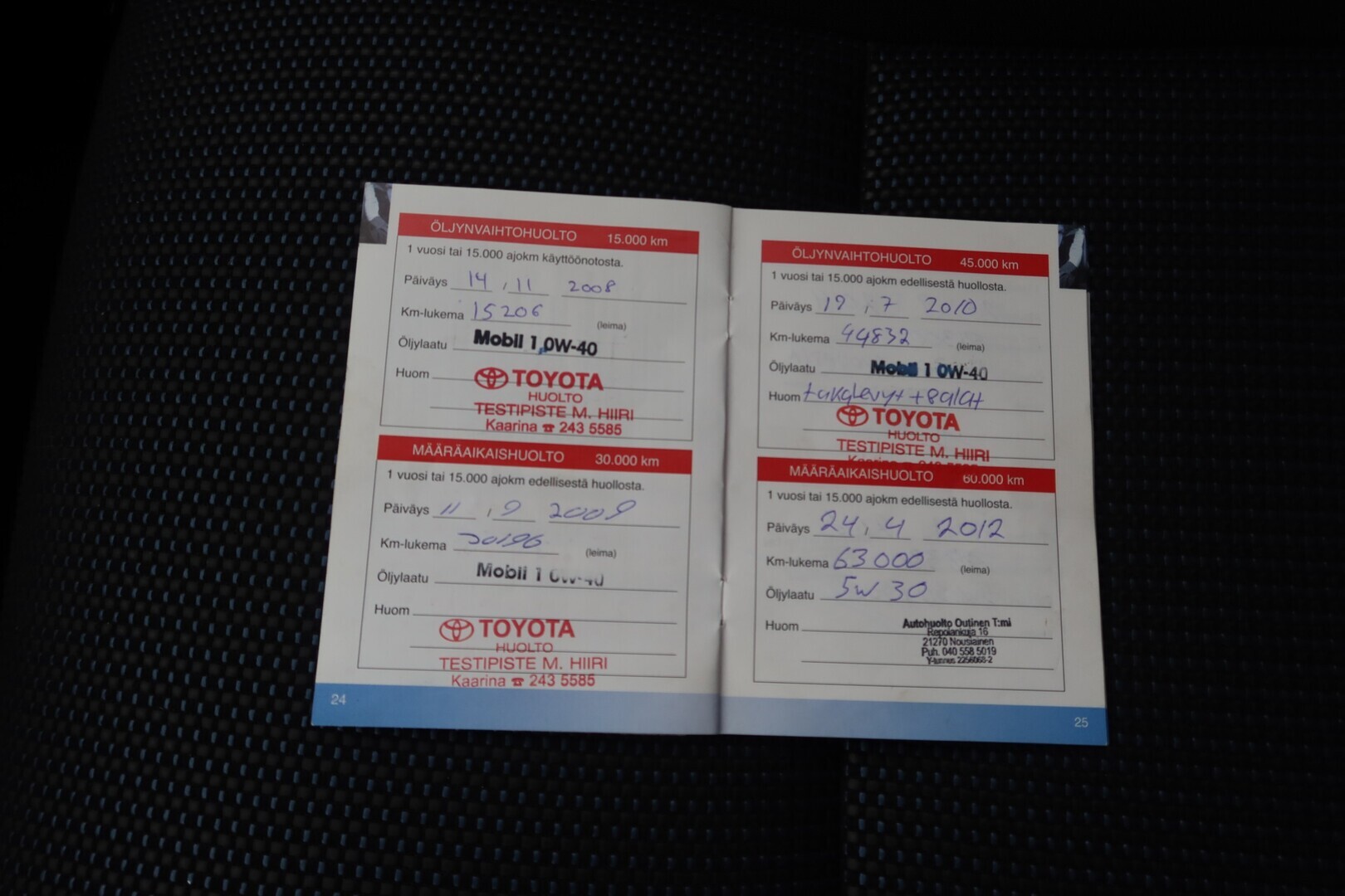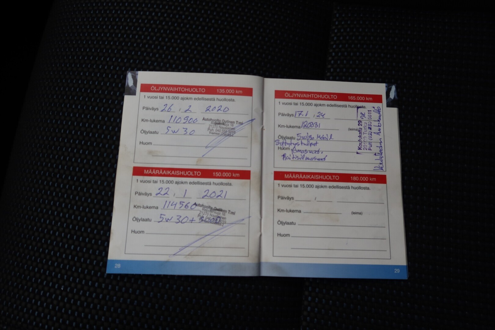 Huoltokirja, viimeisin huolto tehty 135tkm 09/2025