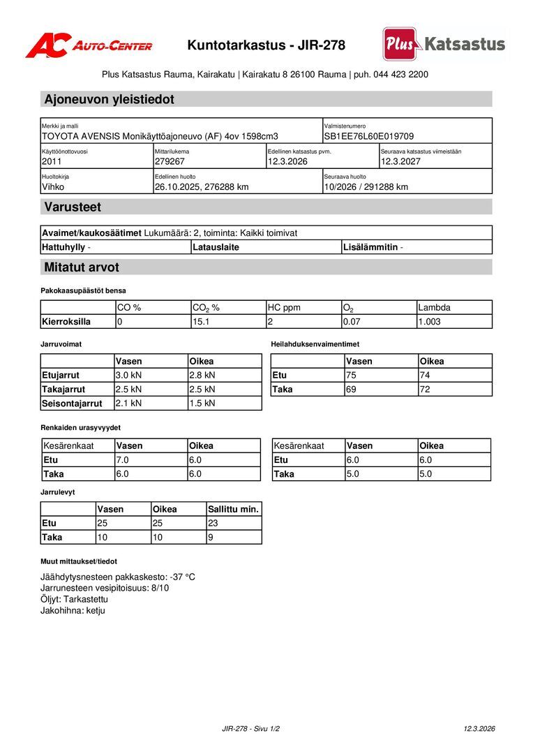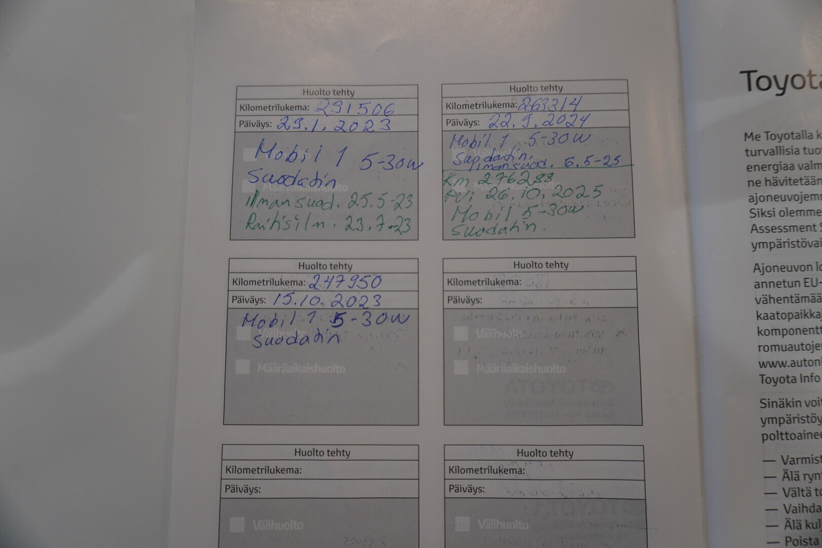 Huoltokirja, viimeisin huolto 10/25 276288km