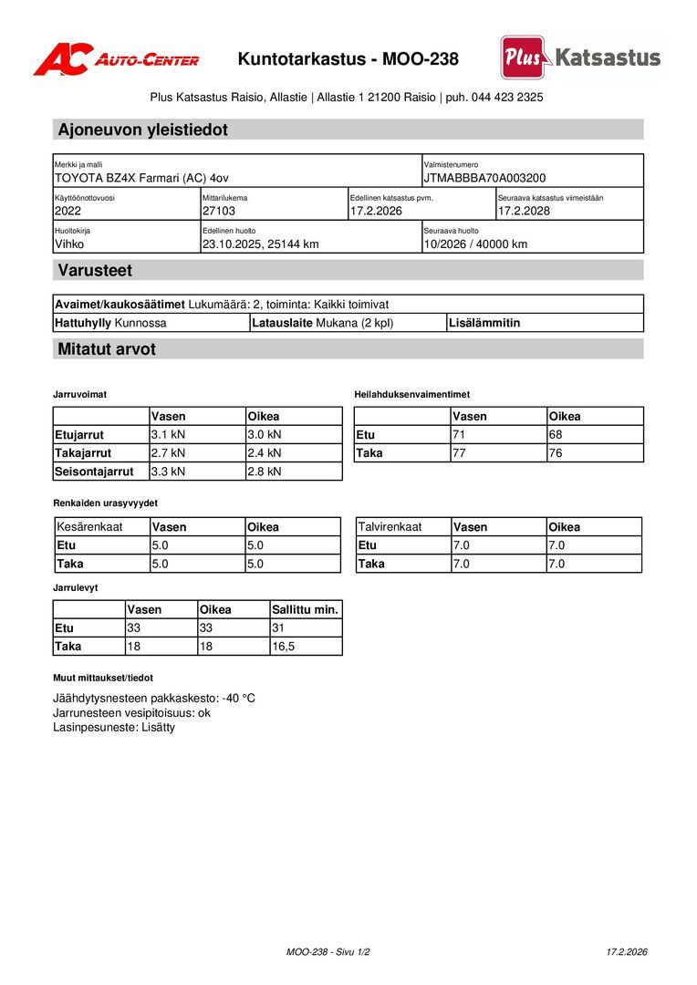 Täydellinen merkkiliikkeen huoltokirja, viimeisin huolto tehty 10/25/25tkm