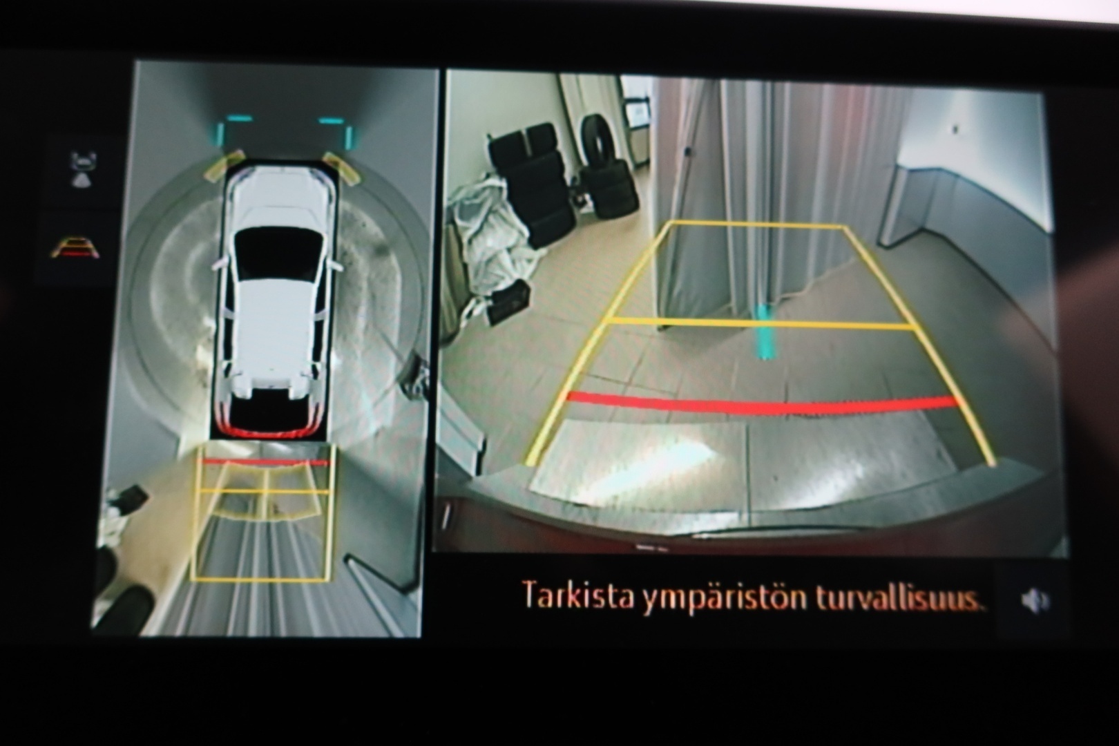 Peruutuskamera opastinviivoin mediakeskuksen näytöllä