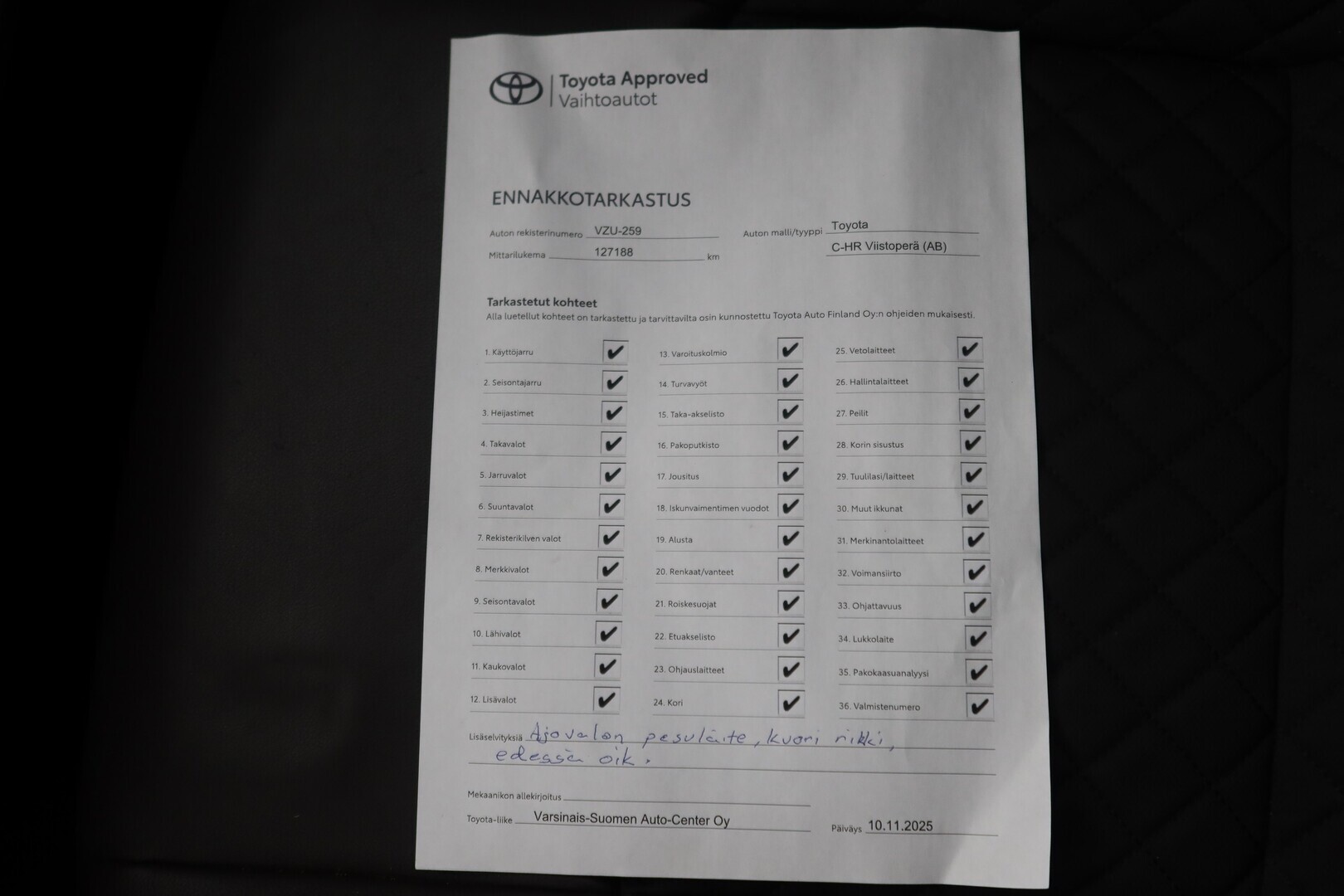 Huoltokirja, viimeisin huolto tehty 11/2025 127tkm.