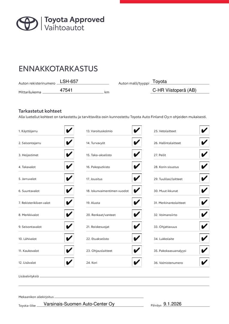 Täydellinen merkkiliikkeen huoltokirja, viimeisin huolto tehty 11/2025 44 TKM kohdalla.