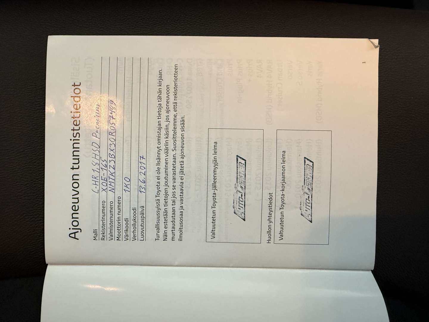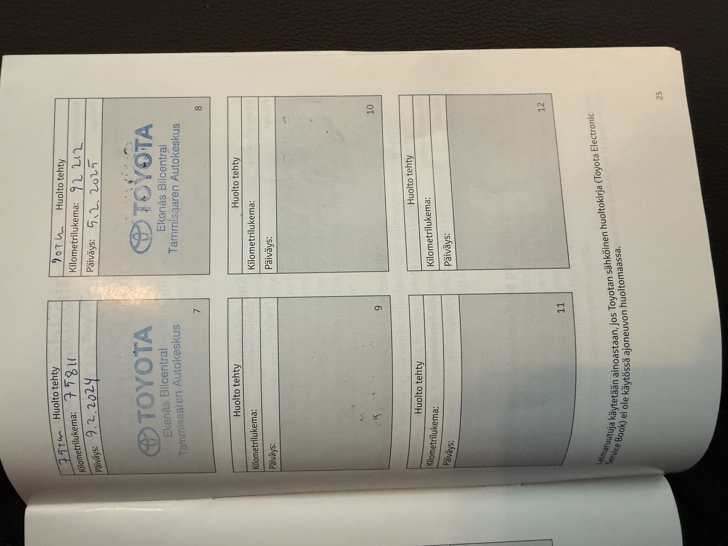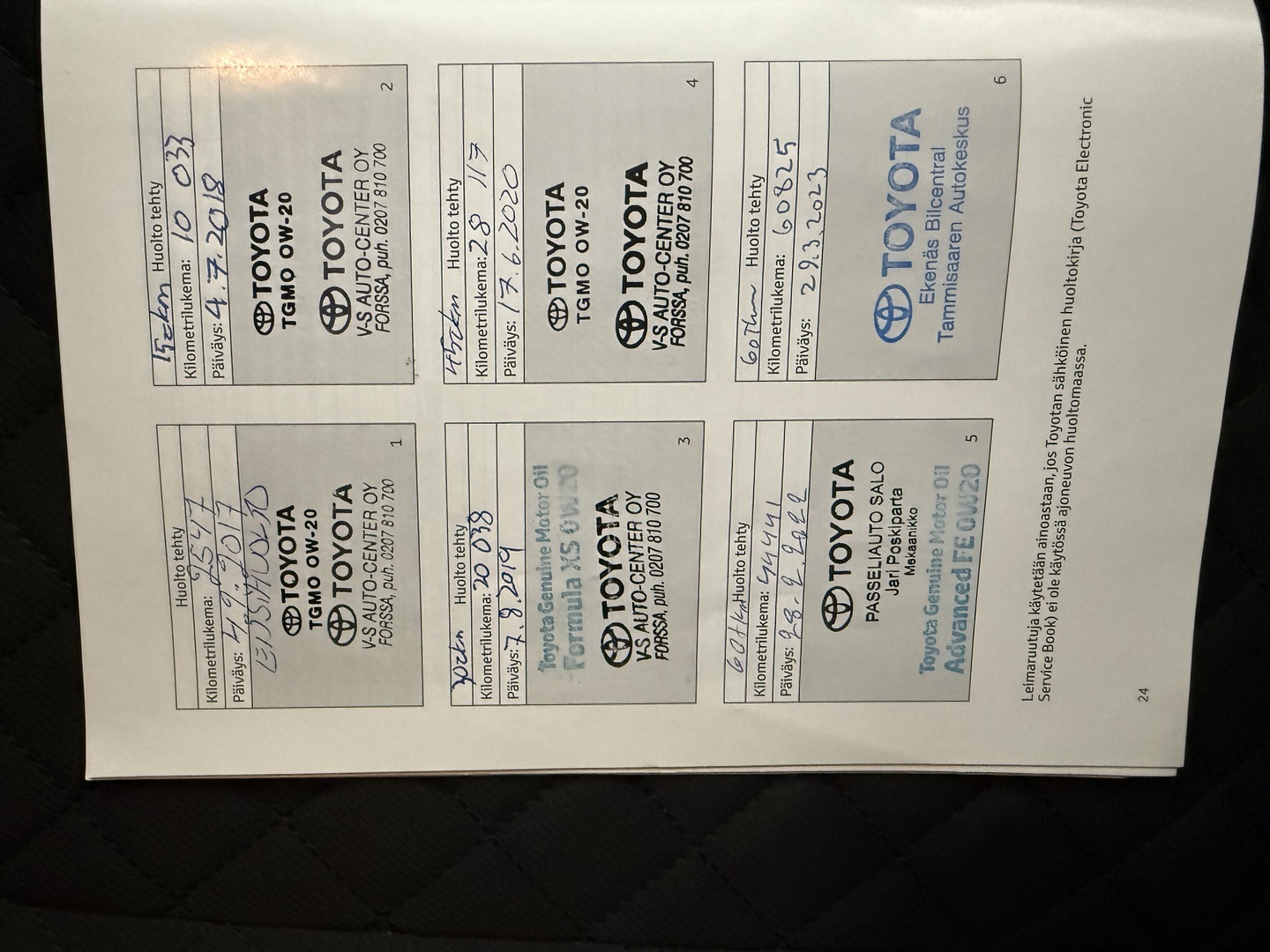 Täydellinen merkkiliikkeen huoltokirja, myydään juuri huollettuna 104tkm/ 10-25 Toyota Auto Center Forssa Oy