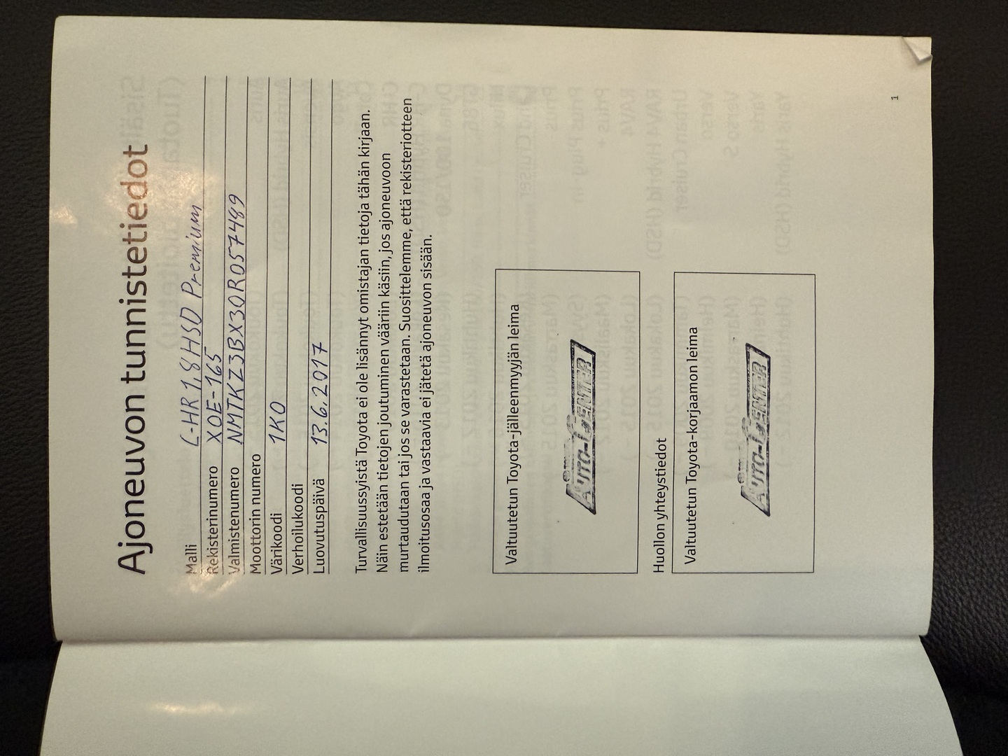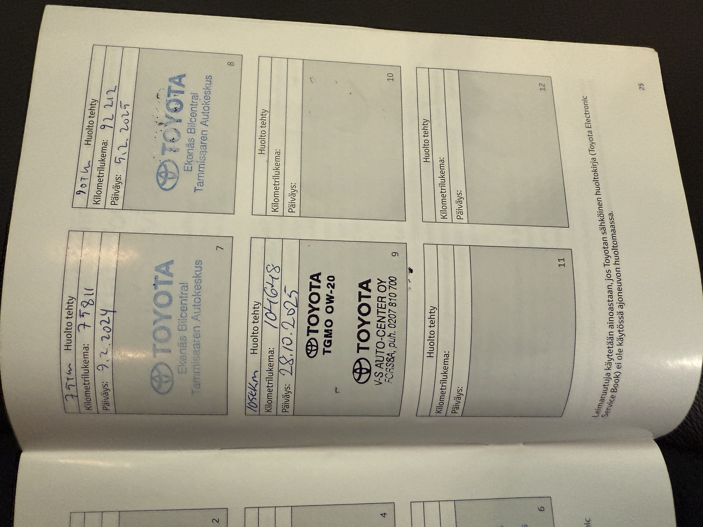 Täydellinen merkkiliikkeen huoltokirja, JUURI HUOLLETTU 104tkm/ 10-25 Toyota Auto Center Forssa Oy