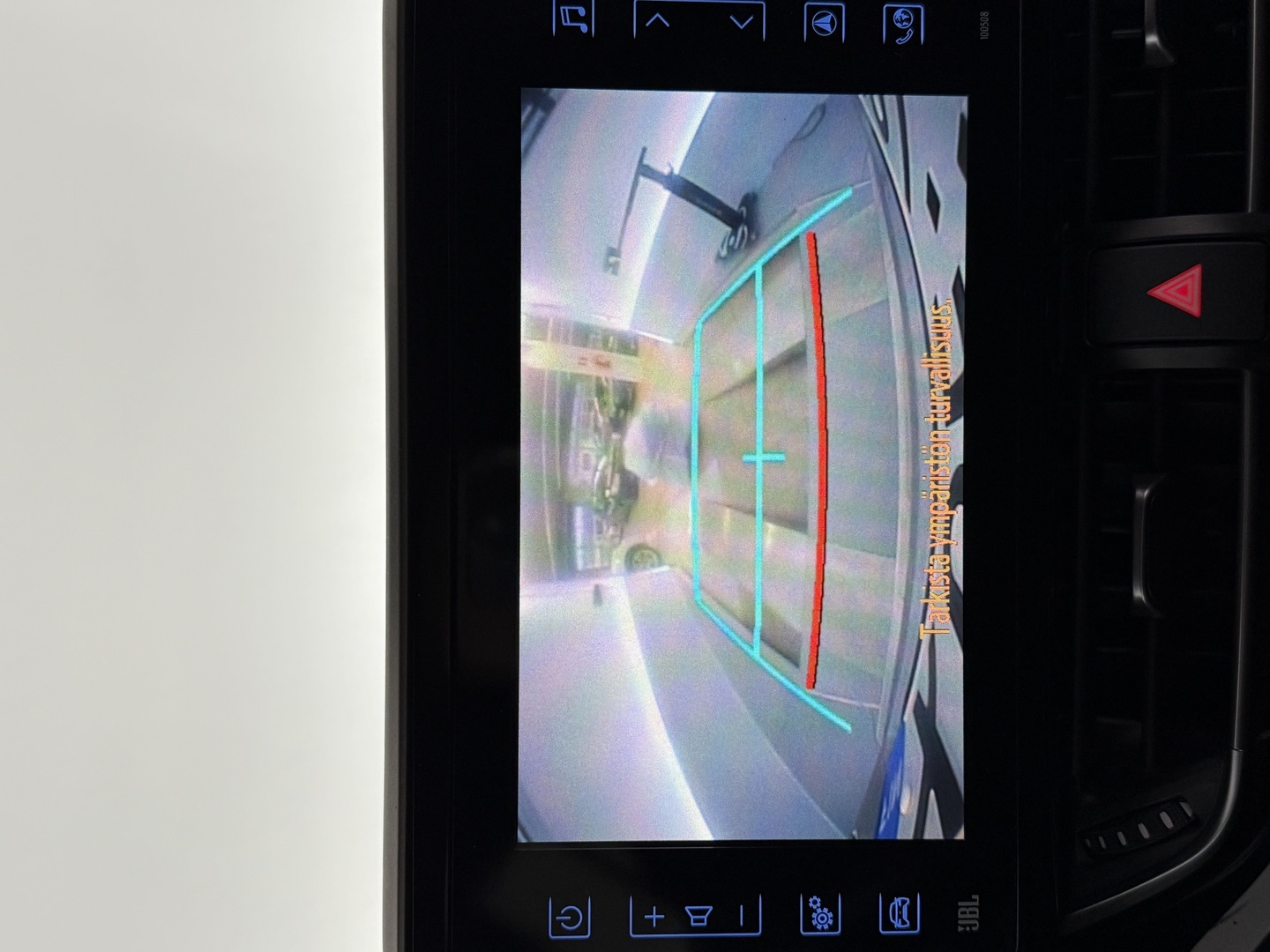 Pysäköintitutkat edessä ja takana, varoitus mediakeskuksen näytöllä ja äänimerkillä