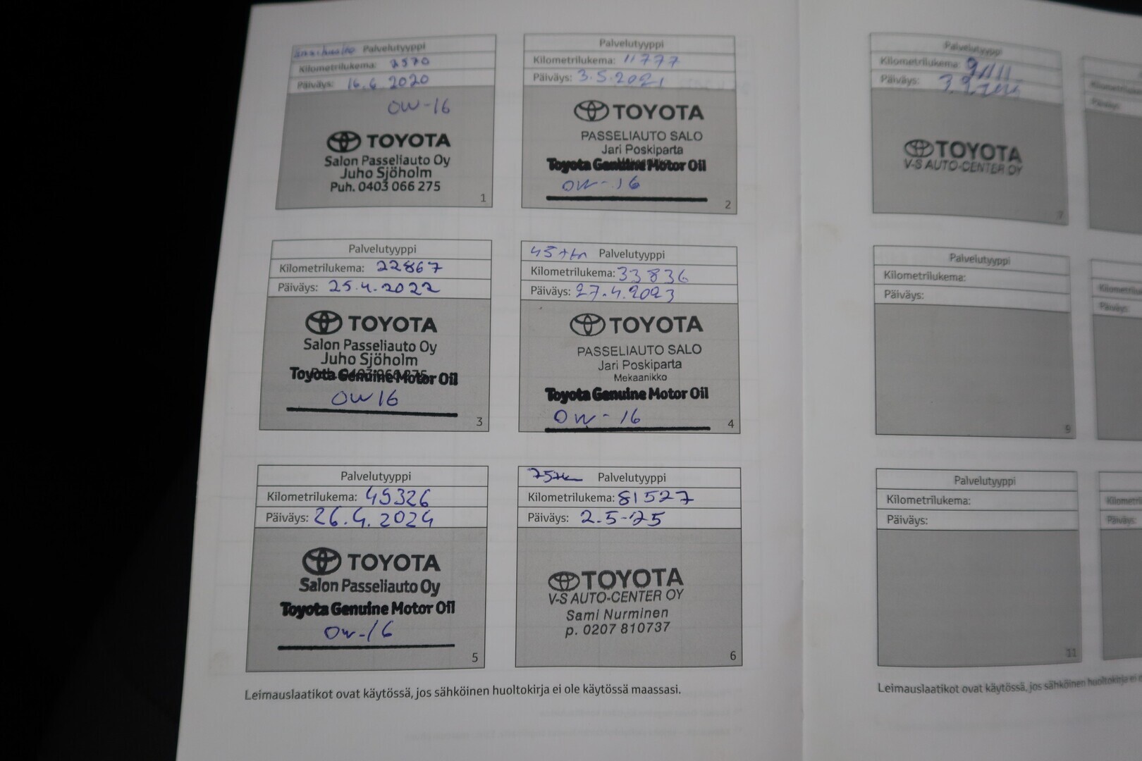 Täydellinen merkkiliikkeen huoltokirja, viimeisin huolto tehty 2.5.25