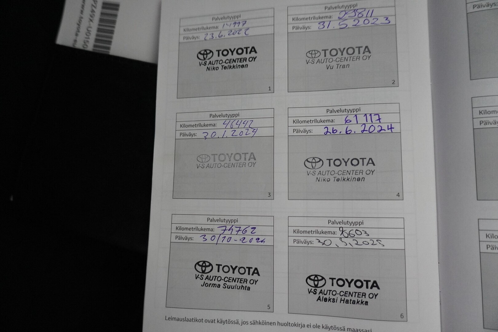 Täydellinen merkkiliikkeen huoltokirja, viimeisin huolto tehty