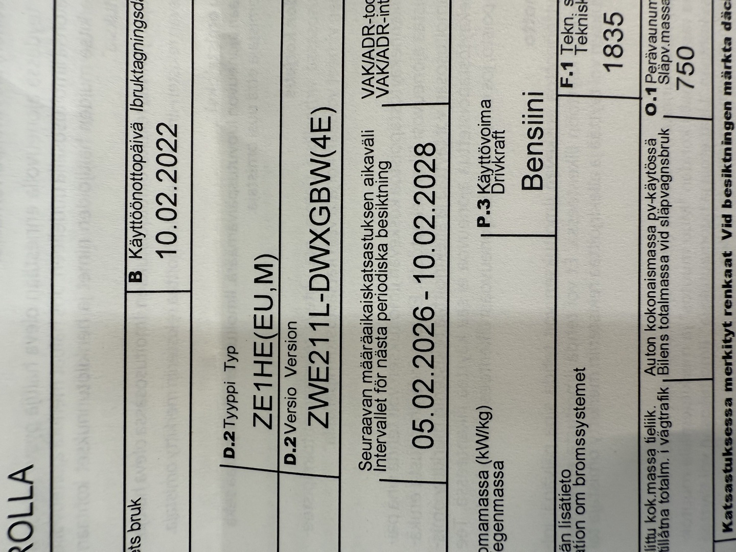 Täydellinen merkkiliikkeen huoltokirja, huollettu 61711km/ 12.01.2026 Toyota Auto Center Forssa Oy