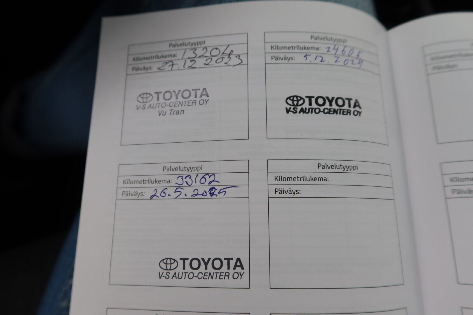 Täydellinen merkkiliikkeen huoltokirja, viimeisin huolto tehty 08/2025 33 TKM kohdalla