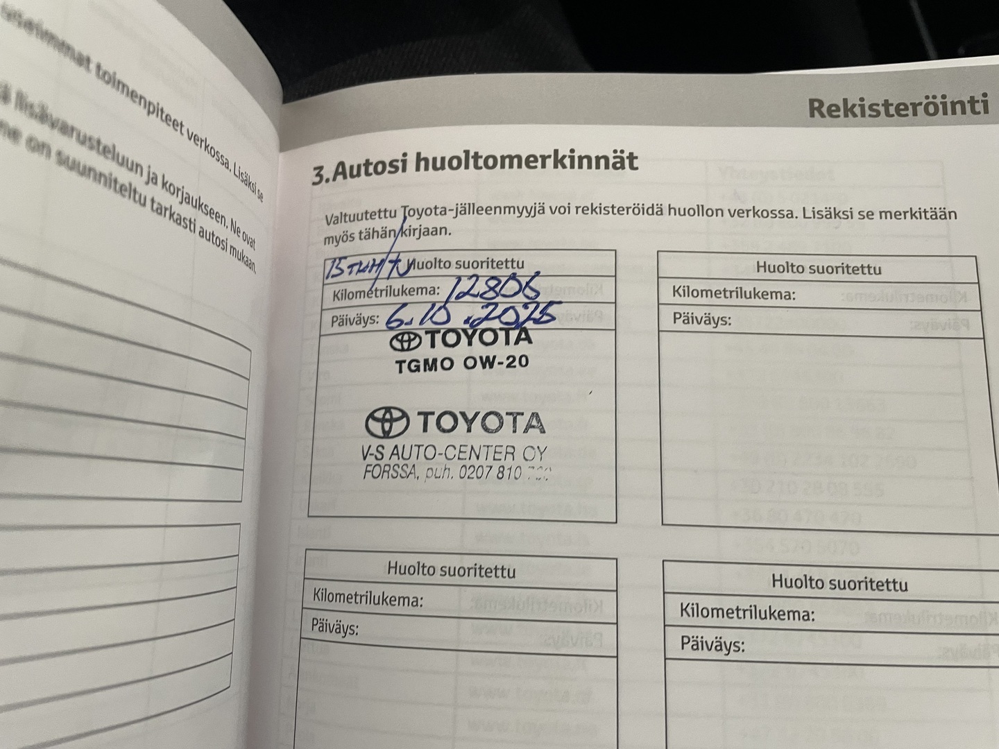 Täydellinen huoltokirja, viimeisin huolto 10/2025, 12tkm kohdalla