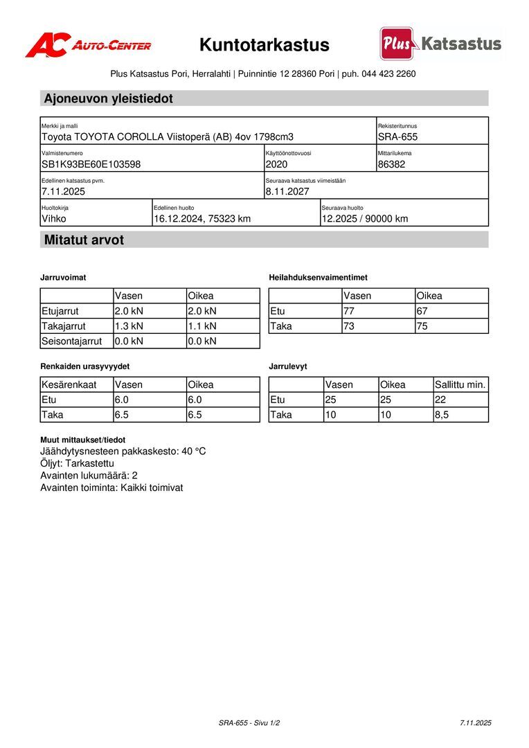 Täydellinen merkkiliikkeen huoltokirja, viimeisin huolto tehty 16.12.24/75TKM