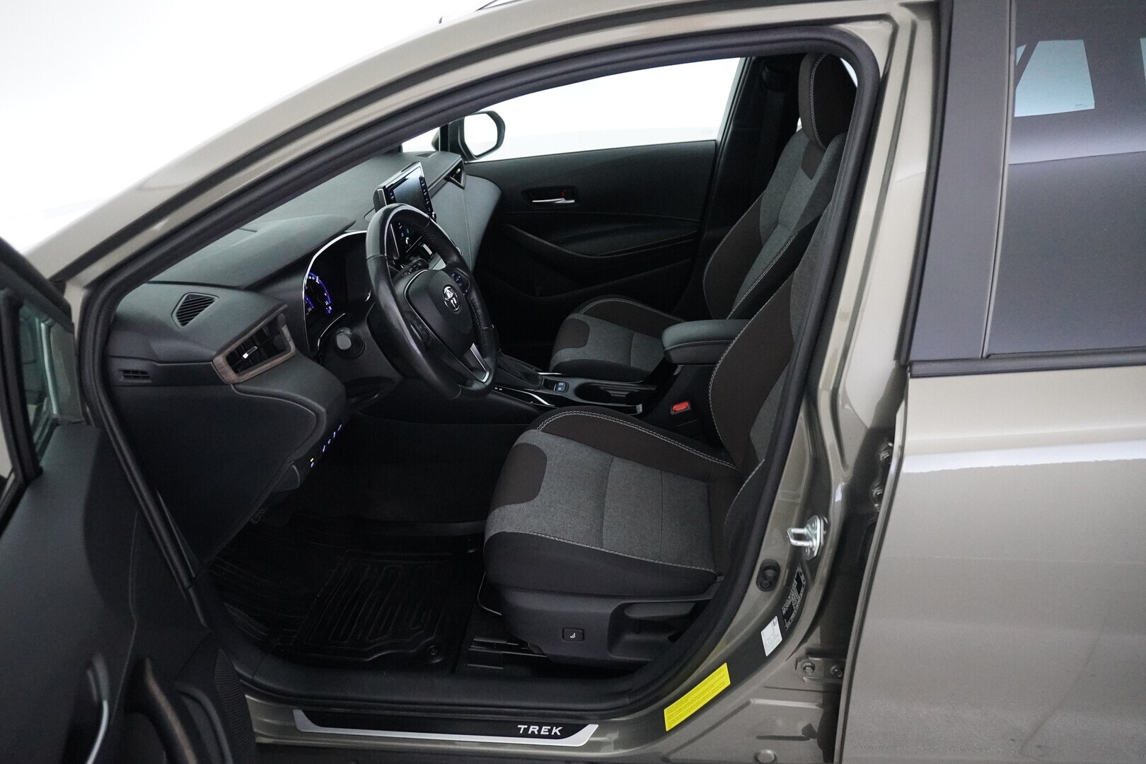 TREK -harmaa/ruskea kangasverhoilu ja puunväriset yksityiskohdat kojetaulussa