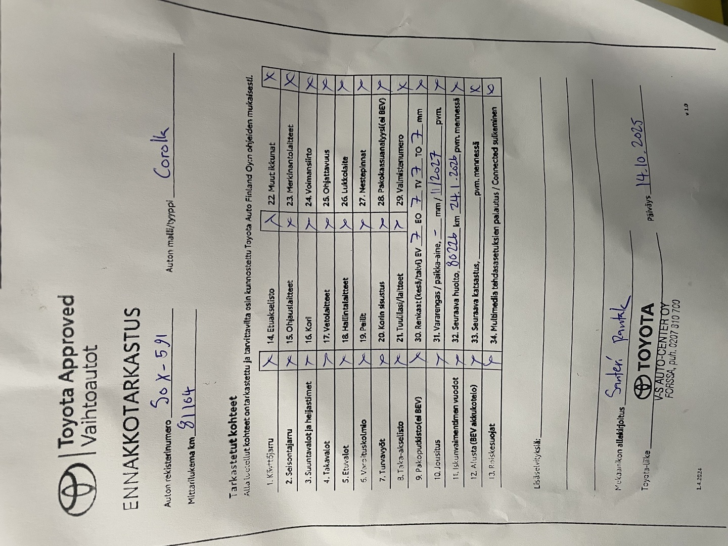 Täydellinen huoltokirja, viimeisin huolto 65tkm 1/2025 kohdalla