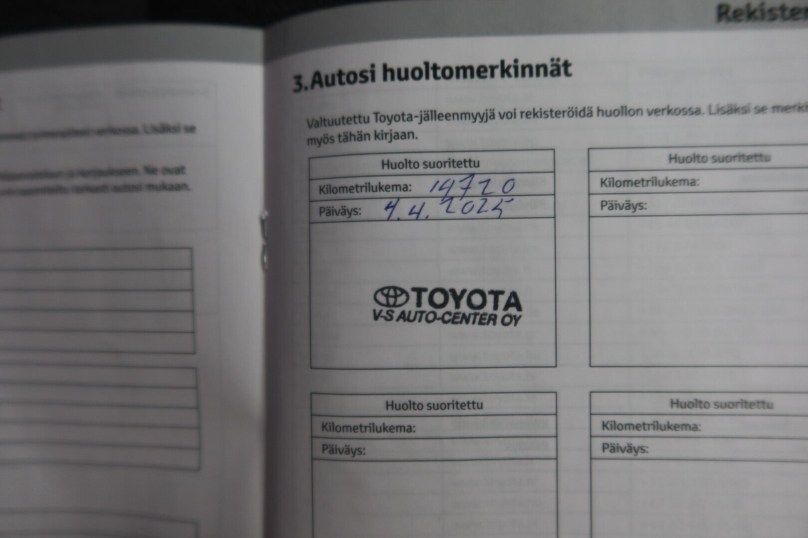 Täydellinen huoltokirja. Viimeisin huolto 14720 km, 4/2025