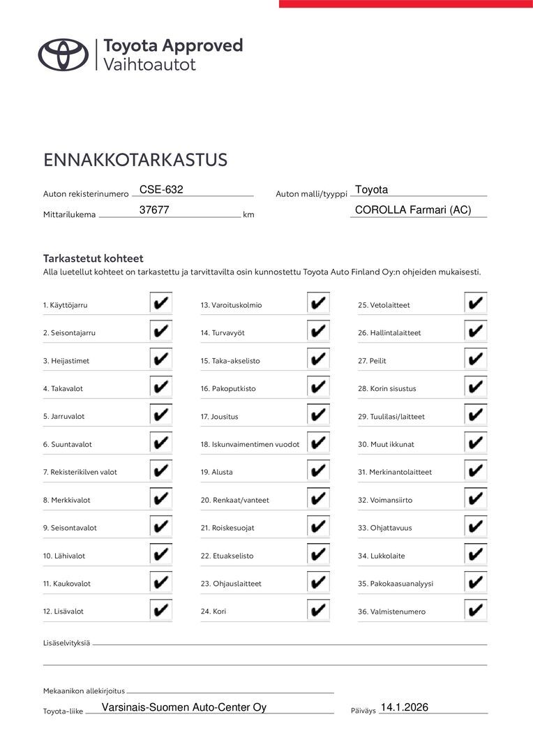 Toyota Approved -turva 1 vuosi ilman km-rajaa ja omavastuuta!